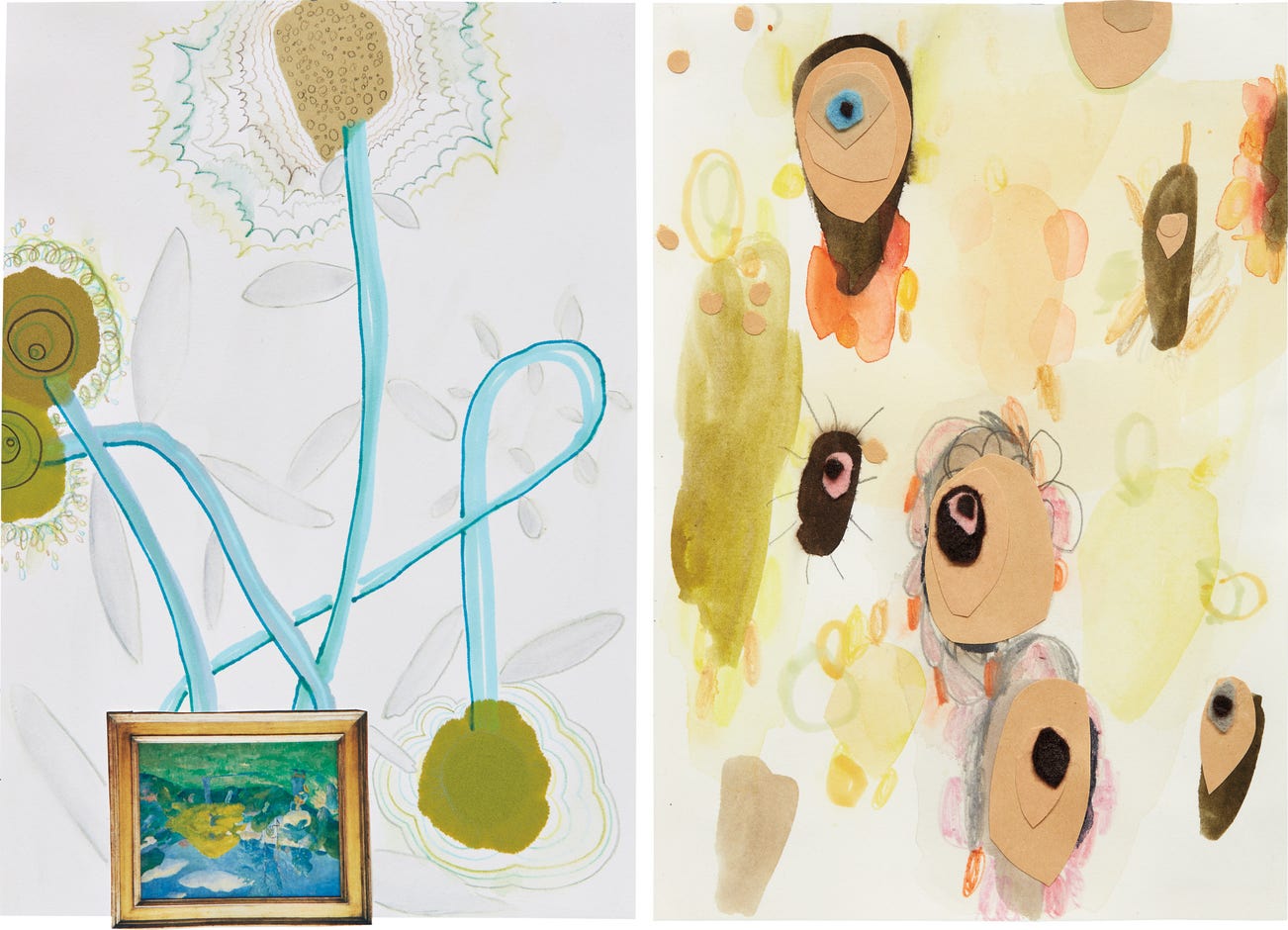collage with ink, watercolor and pencil on paper