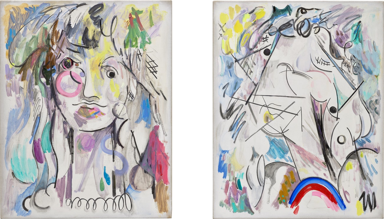 oil, Flashe and charcoal on canvas, diptych