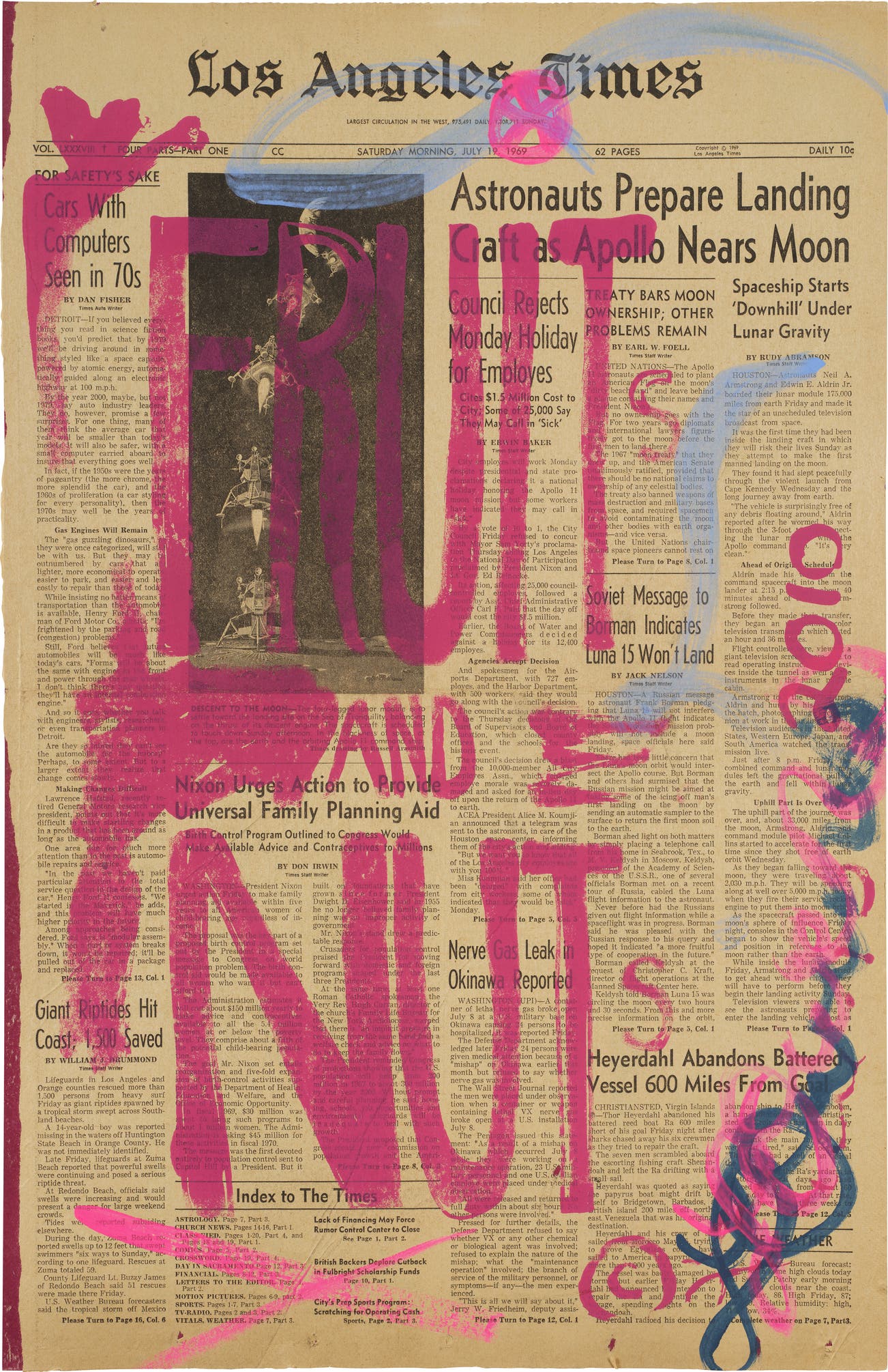 Signed and dated in blue and pink paint, printed in the United States, framed.