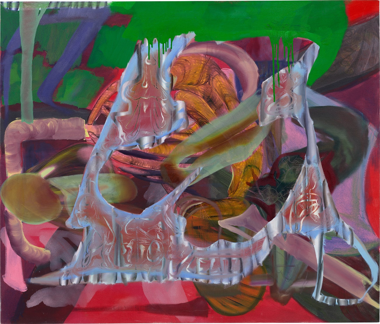 Lauren Quin (b. 1992) lives and works in Los Angeles, California. She holds an MFA from the Yale School of Art, New Haven, CT and a BFA from the School of the Art Institute of Chicago, Chicago, IL. She forms her canvases by painting repeated, intercepted, and reconnected shapes and colors. She is most known for the “tube” shape throughout her compositions. Her work has been the subject of solo exhibitions including her first US museum show My Hellmouth, Nerman Museum of Art, Overland Park, KS (2023); Sagittal Fours, Pond Society, Shanghai, China (2022); Pulse Train Howl, Blum & Poe, Los Angeles, CA (2022), and group exhibitions such as Fire Figure Fantasy: Selections from ICA Miami’s Collection, Institute of Contemporary Art, Miami, FL (2022); and On Boxing, Blum & Poe, Los Angeles, CA (2021).
