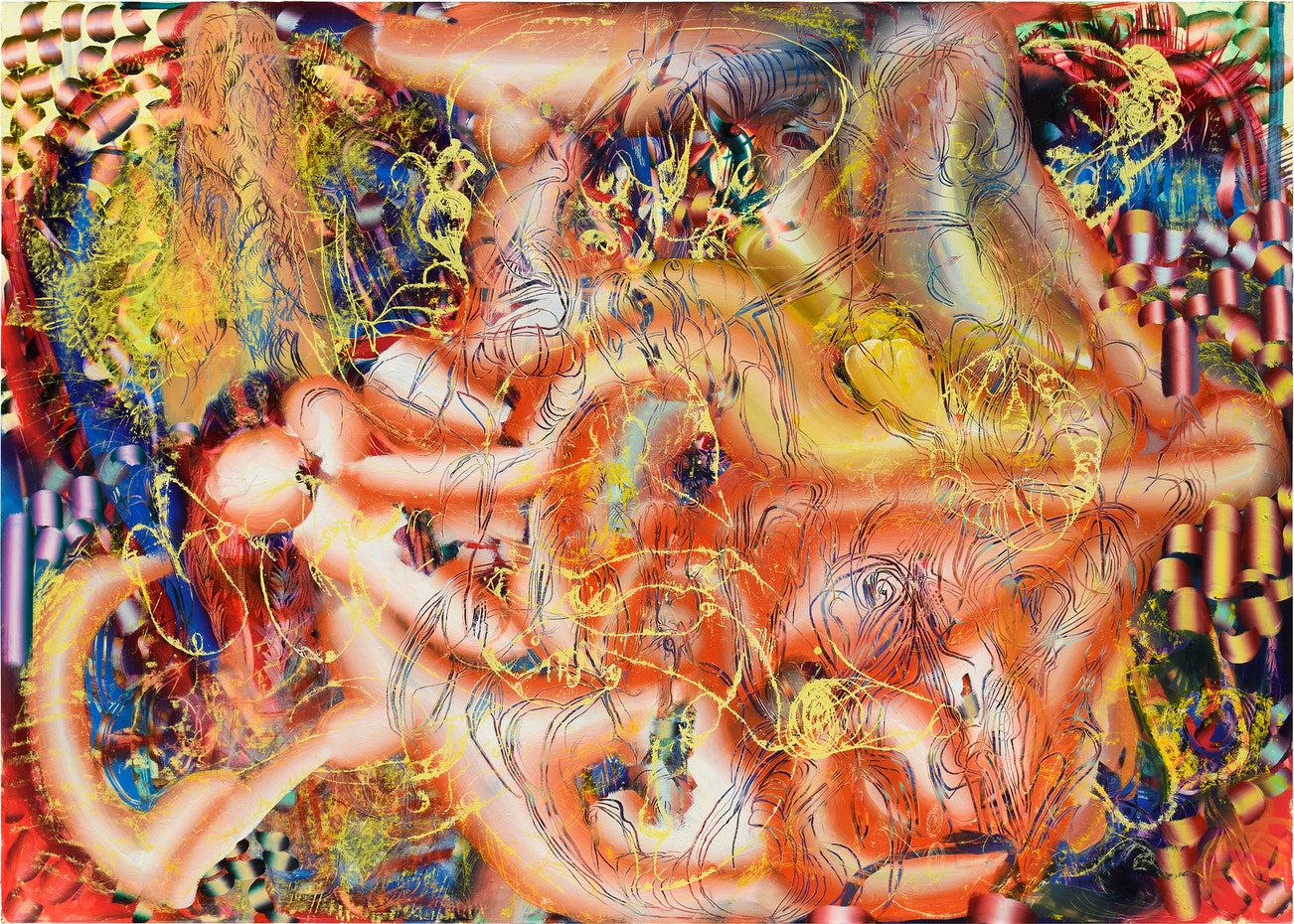 Lauren Quin (b. 1992) lives and works in Los Angeles, California. She holds an MFA from the Yale School of Art, New Haven, CT and a BFA from the School of the Art Institute of Chicago, Chicago, IL. She forms her canvases by painting repeated, intercepted, and reconnected shapes and colors. She is most known for the “tube” shape throughout her compositions. Her work has been the subject of solo exhibitions including her first US museum show My Hellmouth, Nerman Museum of Art, Overland Park, KS (2023); Sagittal Fours, Pond Society, Shanghai, China (2022); Pulse Train Howl, Blum & Poe, Los Angeles, CA (2022), and group exhibitions such as Fire Figure Fantasy: Selections from ICA Miami’s Collection, Institute of Contemporary Art, Miami, FL (2022); and On Boxing, Blum & Poe, Los Angeles, CA (2021).