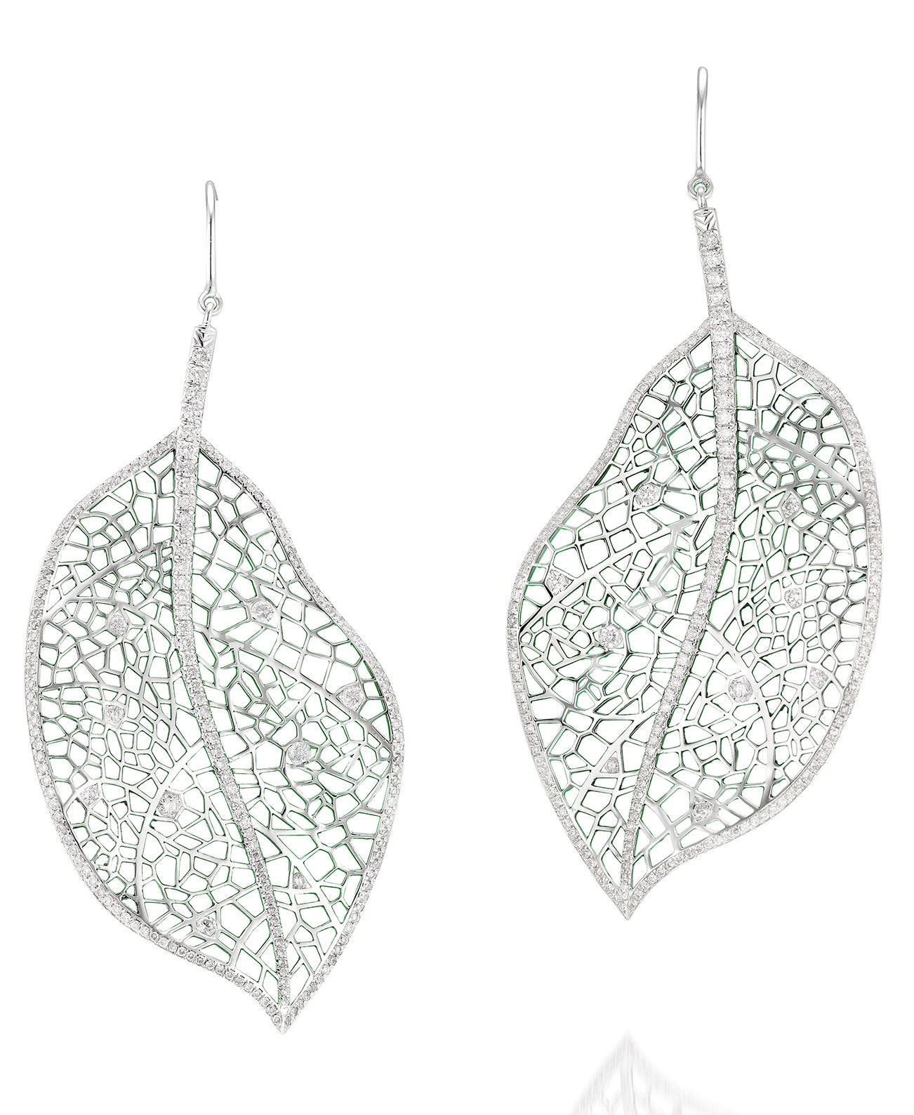 Pair of White Gold and Diamond Ear Pendants, 'Chameleon Leaf'