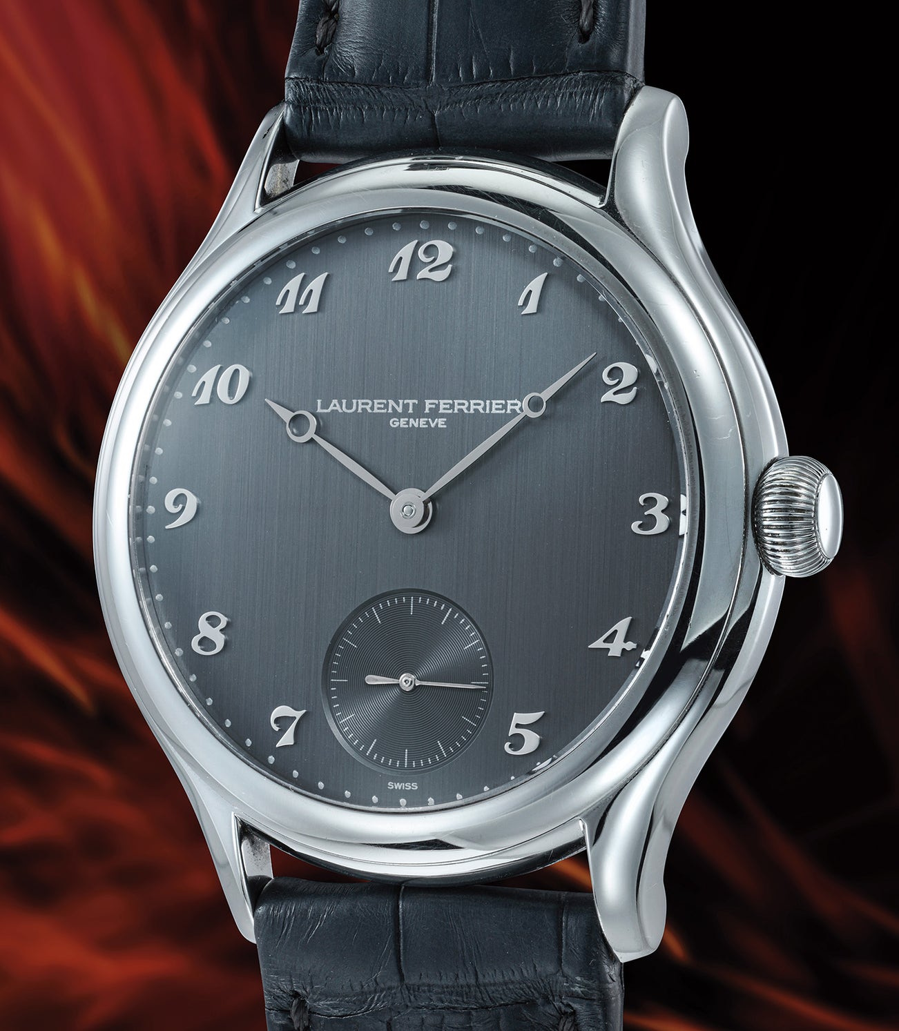 With its round case featuring elegant curves and a delicately stepped bezel, its brushed dial with Breguet numerals and hands, and its onion crown, the present Laurent Ferrier truly takes it inspiration by the most classical watch designs, but the dial color and modern 40mm size make it a modern reinterpretation of those timeless designs.