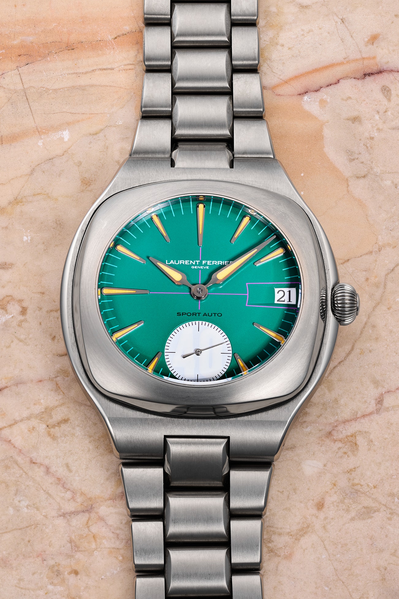 -- Since its founding, Laurent Ferrier has expanded their collection to include the Galet line, Square collection, Tourbillon and Grand Sport Tourbillon collection, their Heritage line and Sport Auto collection. The Sport Auto 40 Série Atelier was introduced in 2023 and inspired by a Porsche 935 Turbo No. 40.