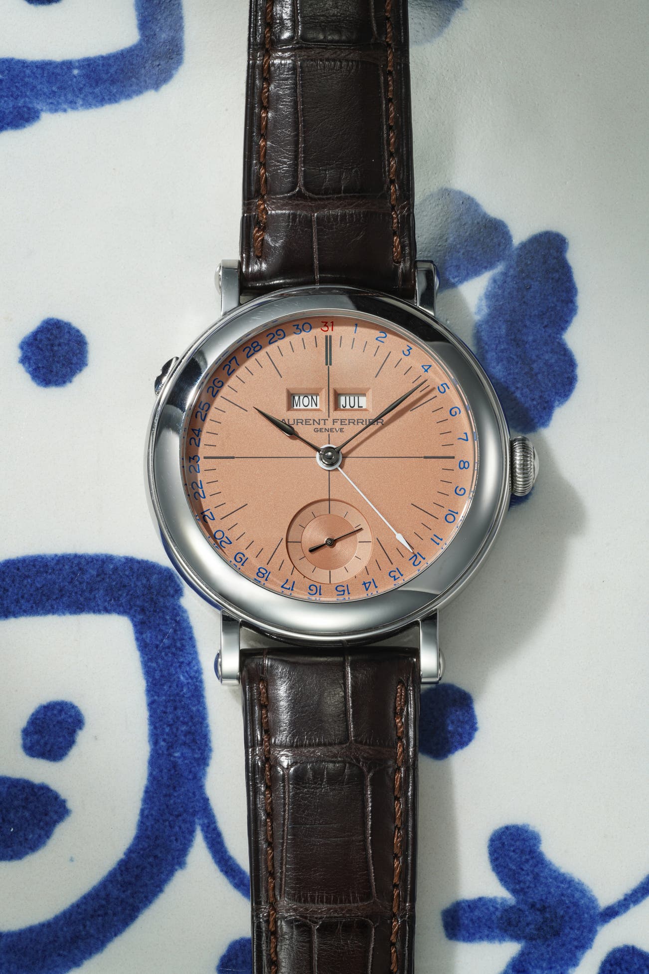 - Created in collaboration with retailer Boutique Montres Prestige in Geneva, the watch in a 40mm steel case with an opaline salmon-coloured dial is a limited edition of just five pieces.