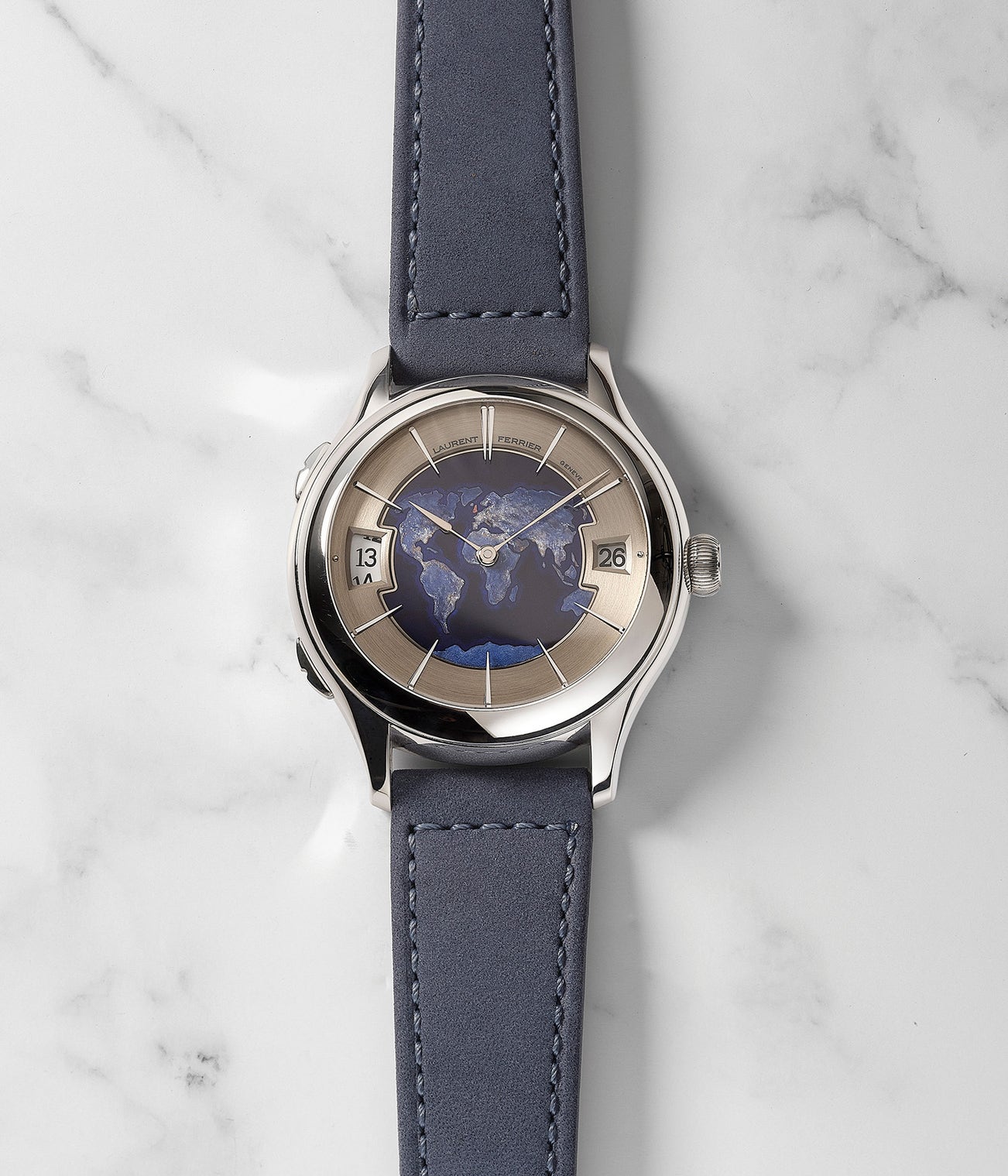 A very fine and rare limited edition platinum dual time wristwatch with date and enamel dial, retailed by William & Son