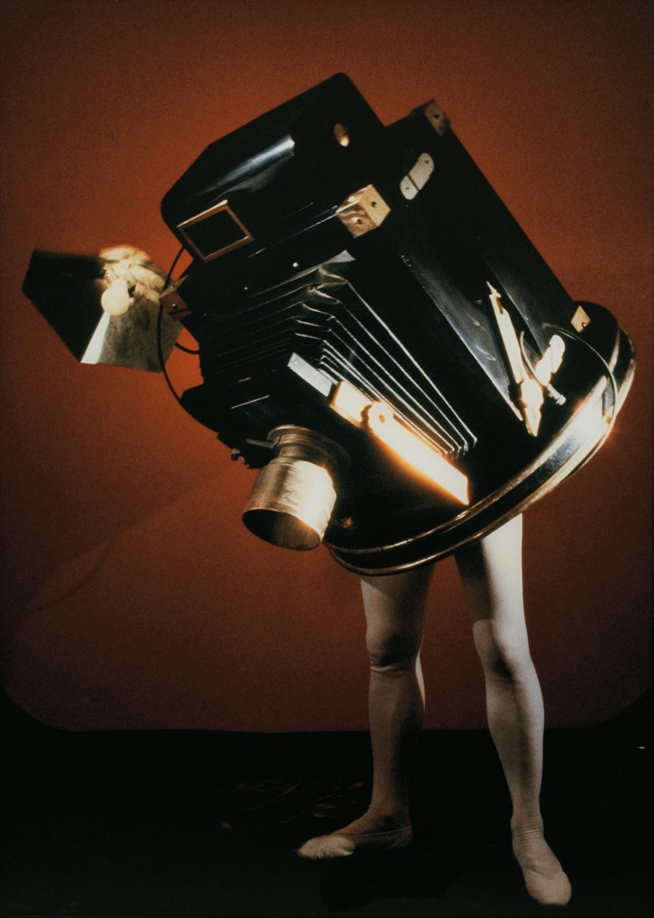 "The first one that I shot was the camera that I borrowed from the Museum of the Moving Image. I placed it on my friend Jimmy DeSana, who taught me about photography. It seemed so fitting to put the camera on top of him, put him in a pair of white tights, and photograph him as Jimmy the Camera."