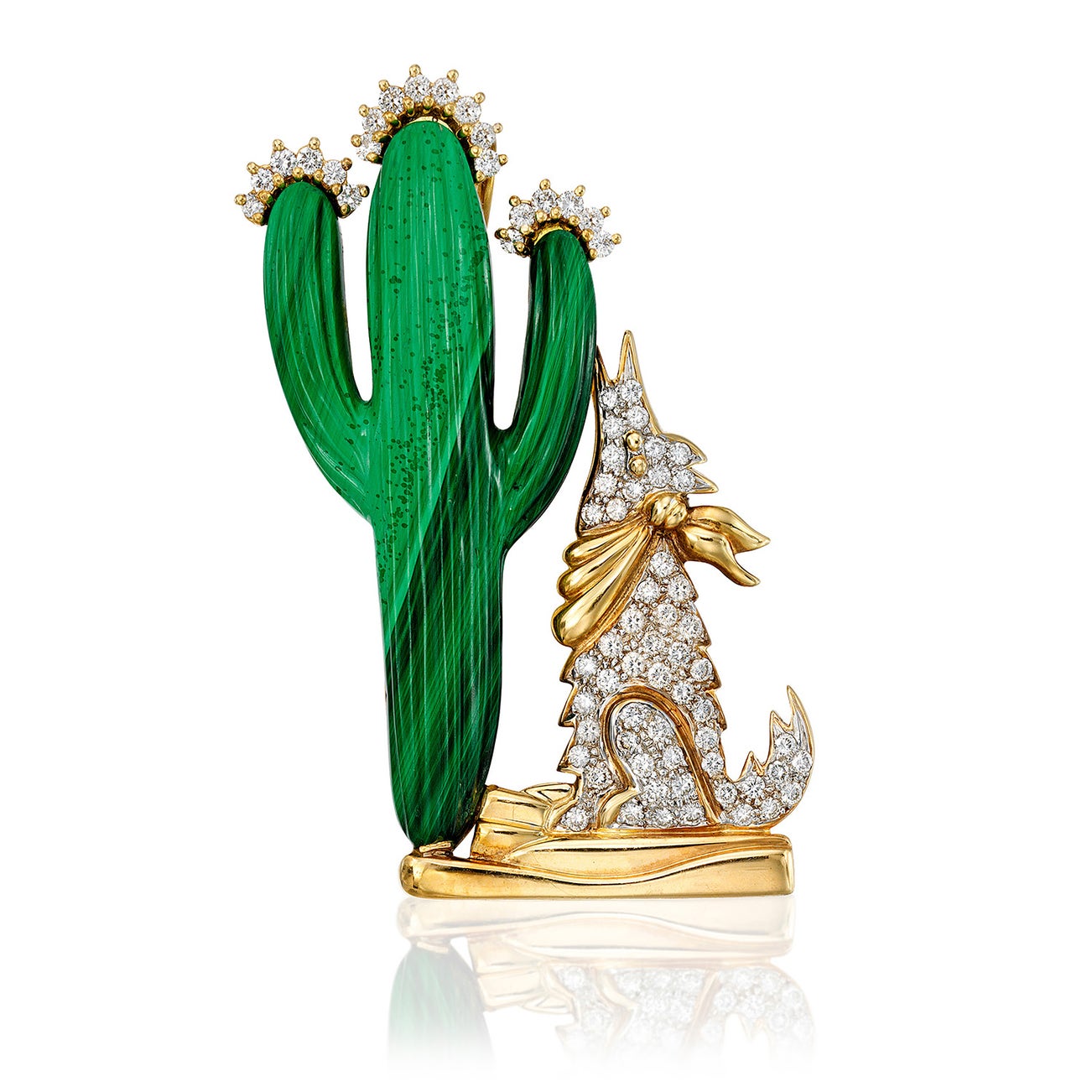 A Malachite, Diamond, and Gold Brooch/Pendant