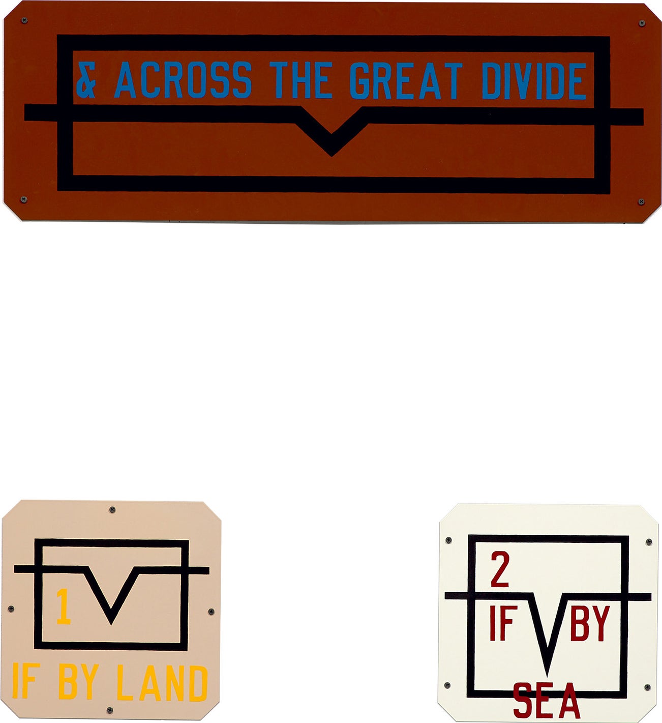The complete set of three screenprints and baked enamel multiples in colors, on steel, the full sheets, all contained in the original cream colored heavy box with screenprinted title.