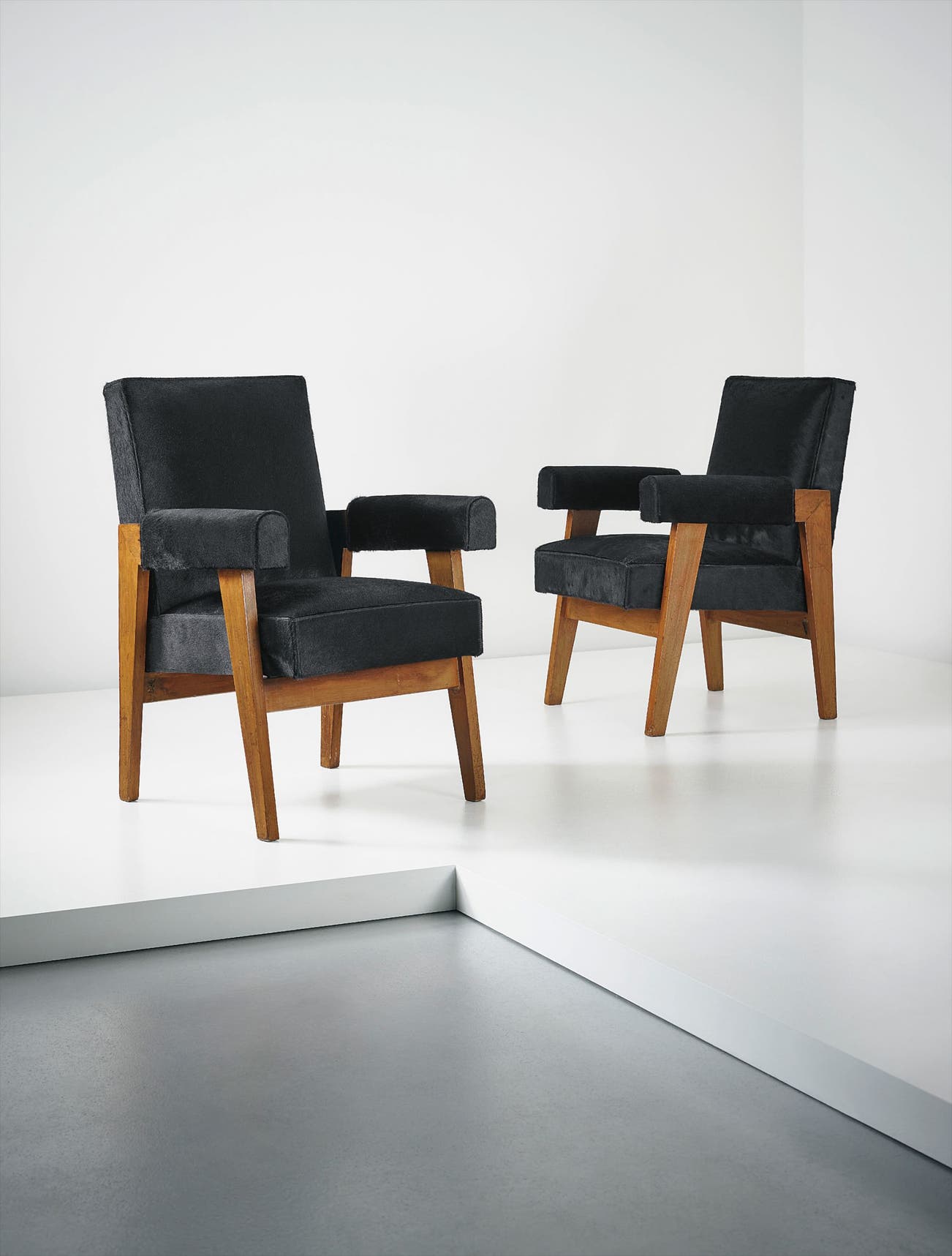 Pair of "Advocate and Press" armchairs, model no. LC/PJ-SI-41-A, from the High Court, Chandigarh