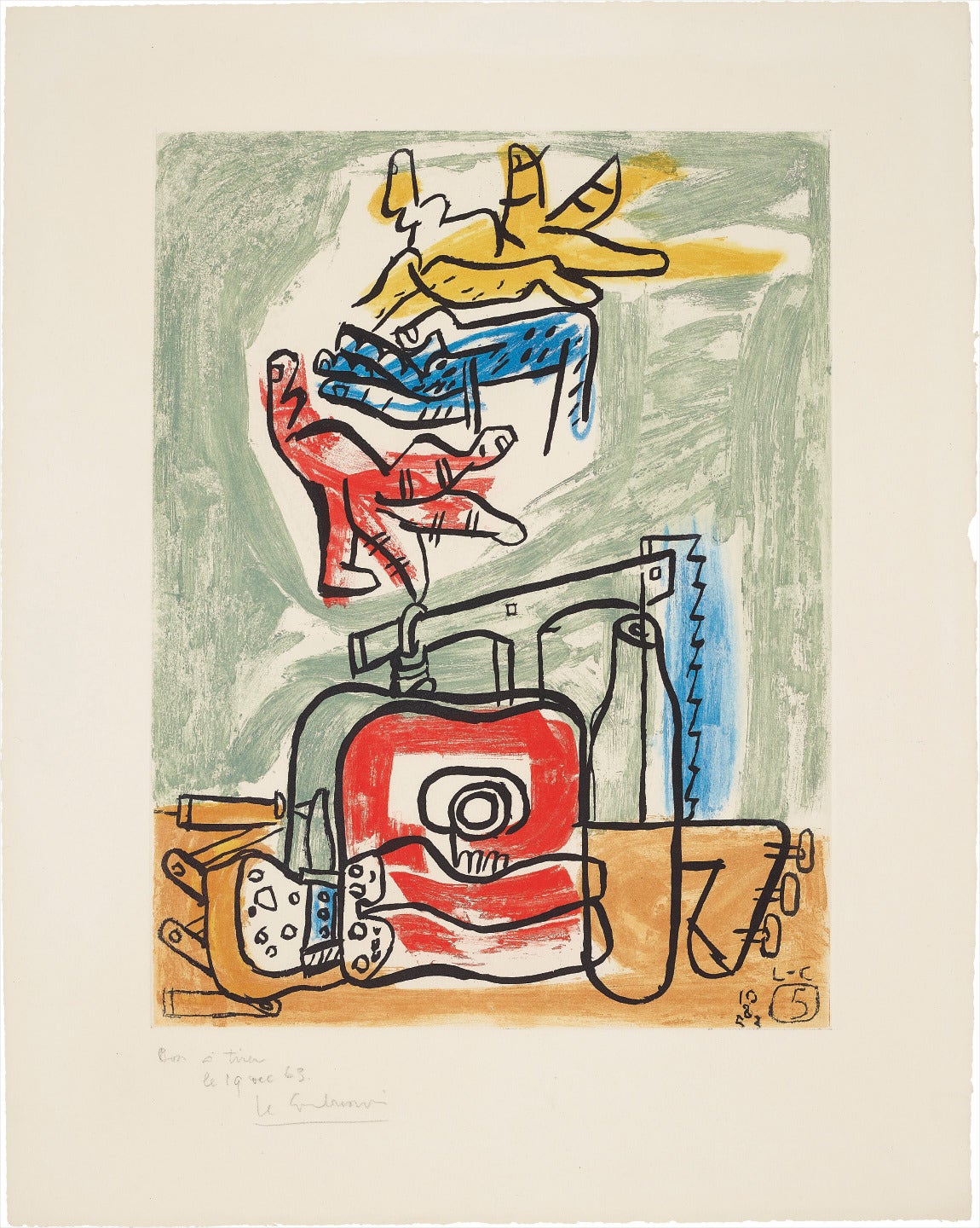 Signed, dated 'le 19 Dec 63' and annotated 'Bon à tirer' in pencil (the good-to-print proof impression, before the edition of 130 in Arabic numerals and 30 in Roman numerals), printed and published by Atelier Crommelynck, Paris, framed.