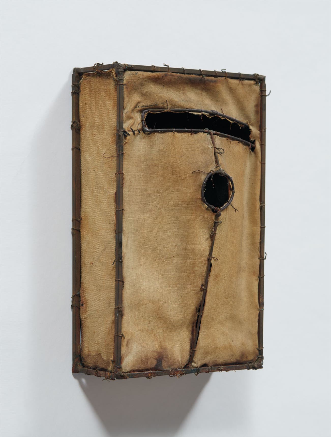 One of the first artists to employ a three-dimensional format that defies the categorizations of both painting and sculpture, Lee Bontecou is renowned for her success as a female artist in a period of male-dominated minimalism. Beginning in the late 1950s during her studies in Rome, and having won a Fulbright scholarship in 1956, Bontecou was inspired by the architectural structures of the ancient city. Her first sculptures were made during this time period, composed of terracotta over welded metal supports. The present lot belongs to the year that the artist returned to New York in 1959 and received recognition in the post-war minimalist sphere, when there was a pivotal shift in her sculptural practice. Having discovered the use of a blowtorch, Bontecou began creating lightweight, welded metal frameworks, which she subsequently filled with wire mesh, canvas and muslin. Untitled is one of the most recognizable and renowned examples from the very beginning of this important transition for Bontecou.