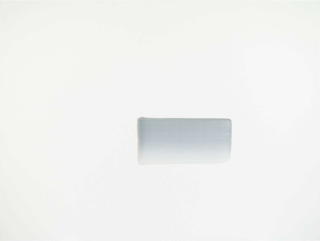 Composed of singular sweeps of paint using the artist’s traditional grey palette, Dialogue sees the paint built up over an extended period of time, with the brush gradually unloading and the mark lightening as he drags it across the surface of the canvas, each repetition being ritualistically controlled by Lee’s held breath. From right to left, the sweeps of paint fade from a blue grey to a pure white. Developing this series since 2006, the present lot exemplifies the artist’s composition of “a single dab in the void”, challenging the relationship between the “object” and the space it occupies on the canvas, immersing oneself in the art of encounter.