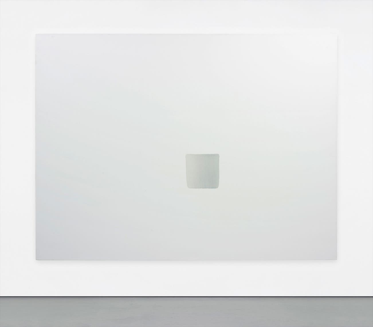 Correspondanceis a visual essay on the inter-relationships between objects, space, matter, and viewer. Employing a minimalistic aesthetic combined with techniques reminiscent of East Asian calligraphy, this work was developed through the careful application of oil paint and metallic pigment through singular brushstrokes in layers over an extended period of time. The silver square of fading brushstrokes floats freely over a background painted in a creamy white which is representative of the artist’s traditional colour palette.