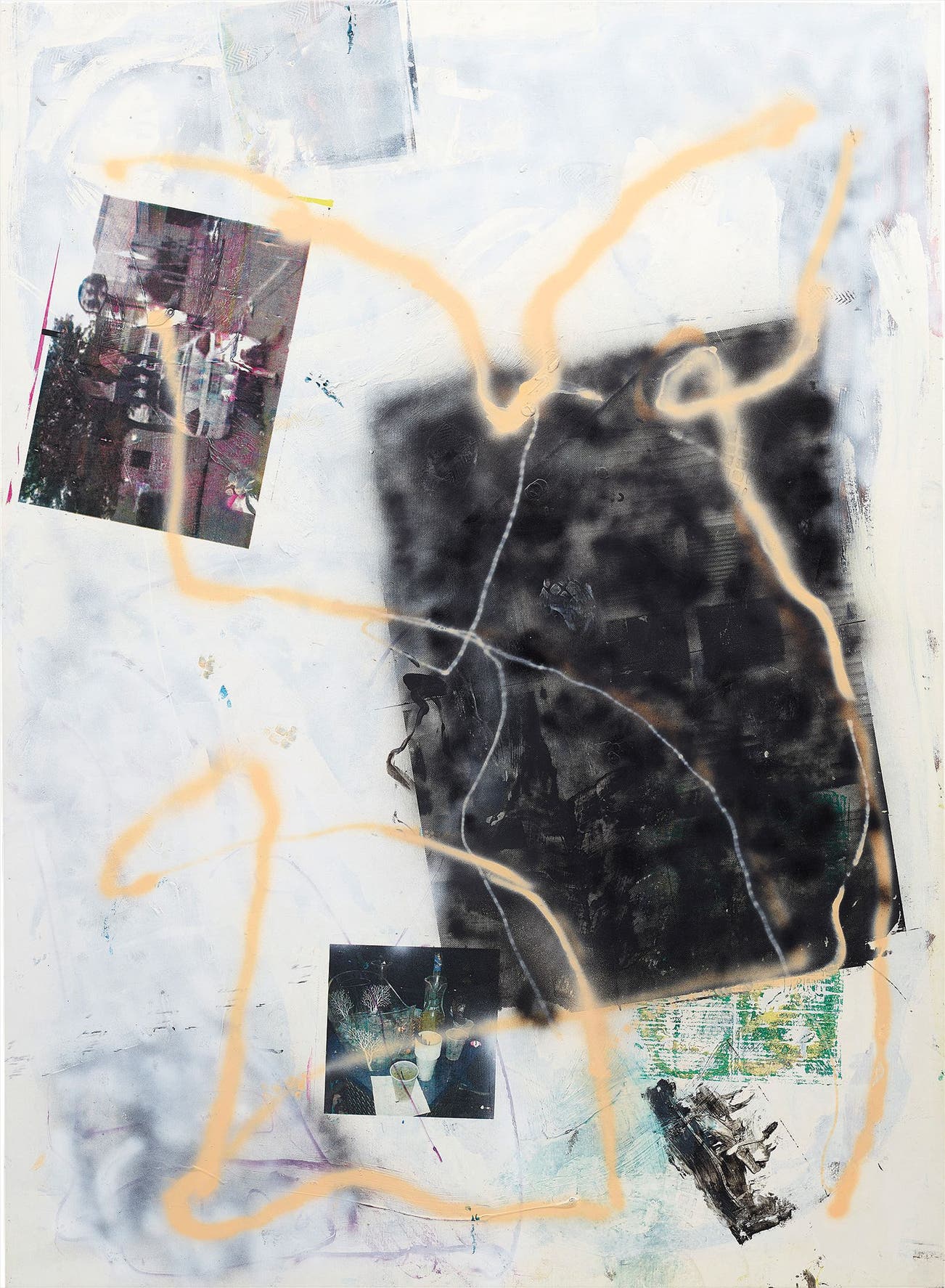 lacquer, spray paint, acrylic and silkscreen on canvas