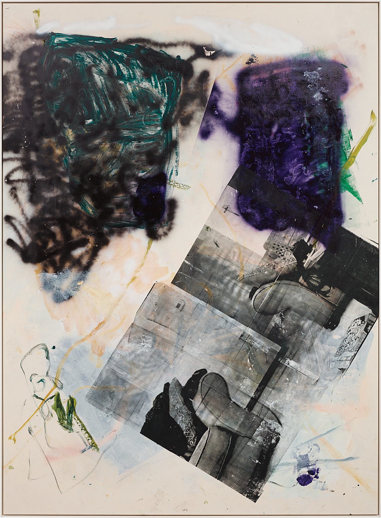 lacquer, spray paint, acrylic and silkscreen on canvas