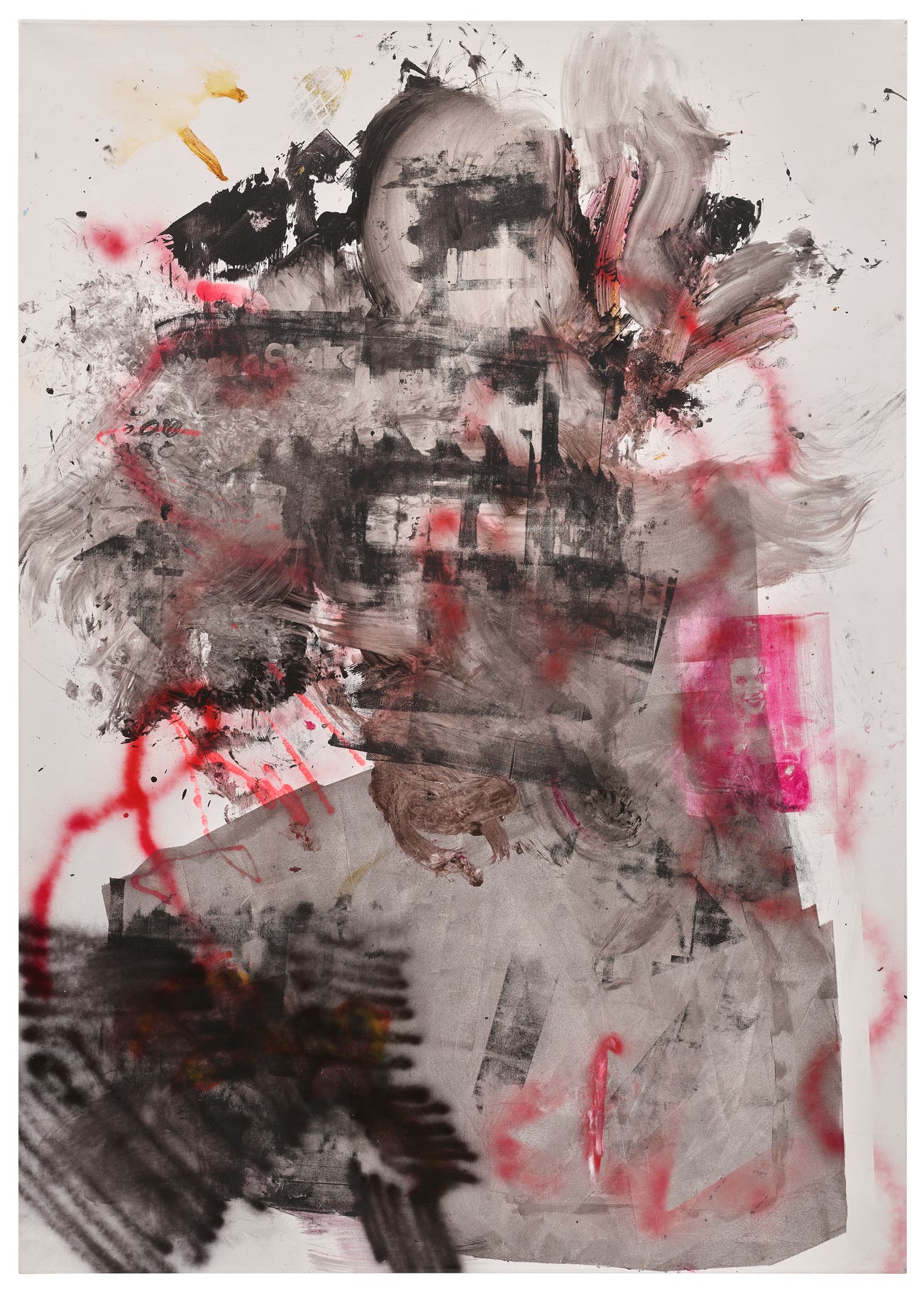 acrylic, varnish, spray paint and silkscreen on canvas