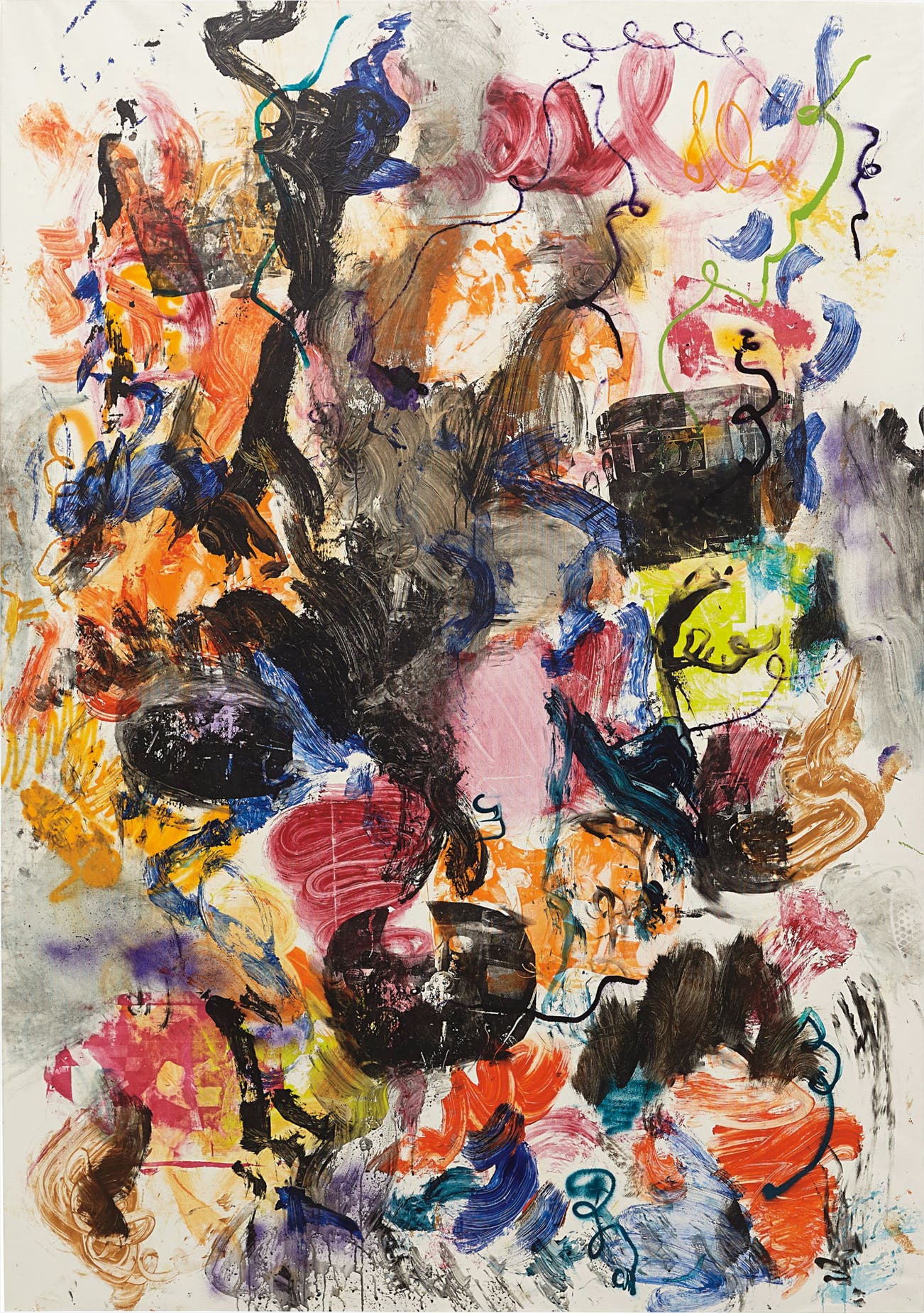 acrylic, lacquer, spray paint, silkscreen on canvas