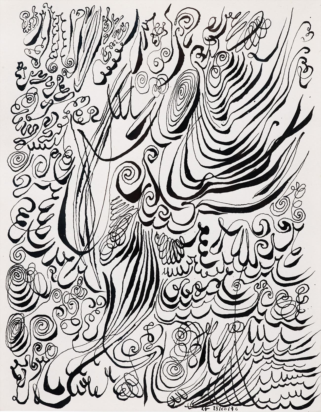 One particularly controversial work, La Civilización Occidental y Cristiana (Western Christian Civilization), was exhibited in 1965 and promptly censured by the Catholic Church, as the sculpture features a store-bought Jesus figure crucified to a U.S. fighter jet. However, Ferrari is probably best known for his "written drawings" that feature compositions of abstracted handwriting created in various mediums, conveying emotion and visual poetry.