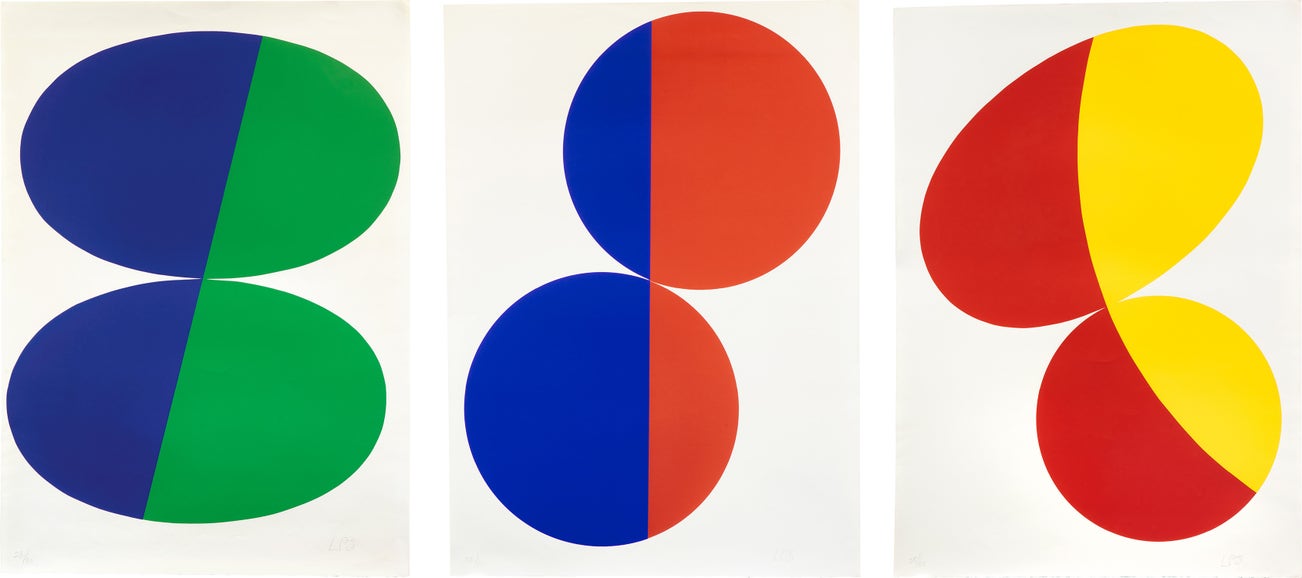 The complete set of three screenprints in colors, on Rives BFK paper, with full margins.