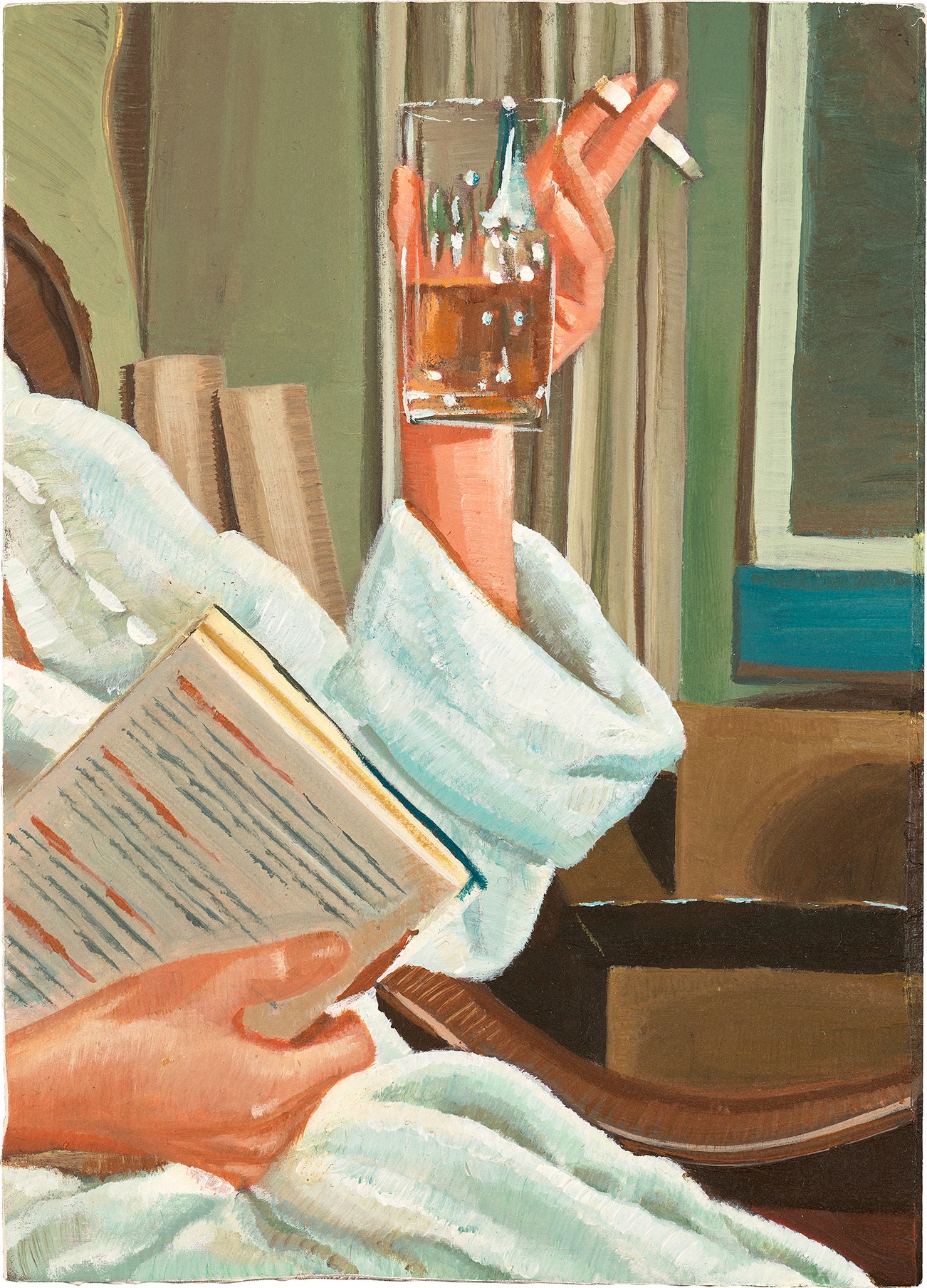 acrylic and oil on paper laid on panel