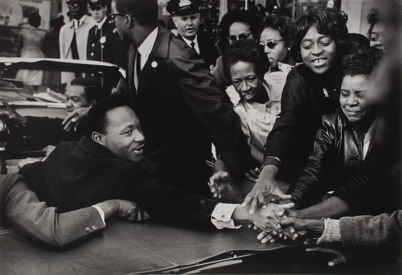 The Reverend Martin Luther King Jr. being greeted in an open car, Maryland
