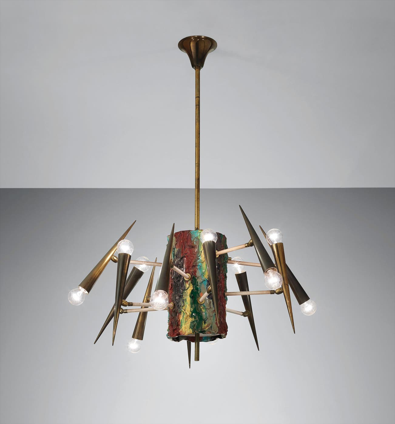 Glazed ceramic, tubular brass, painted tubular metal, painted metal.