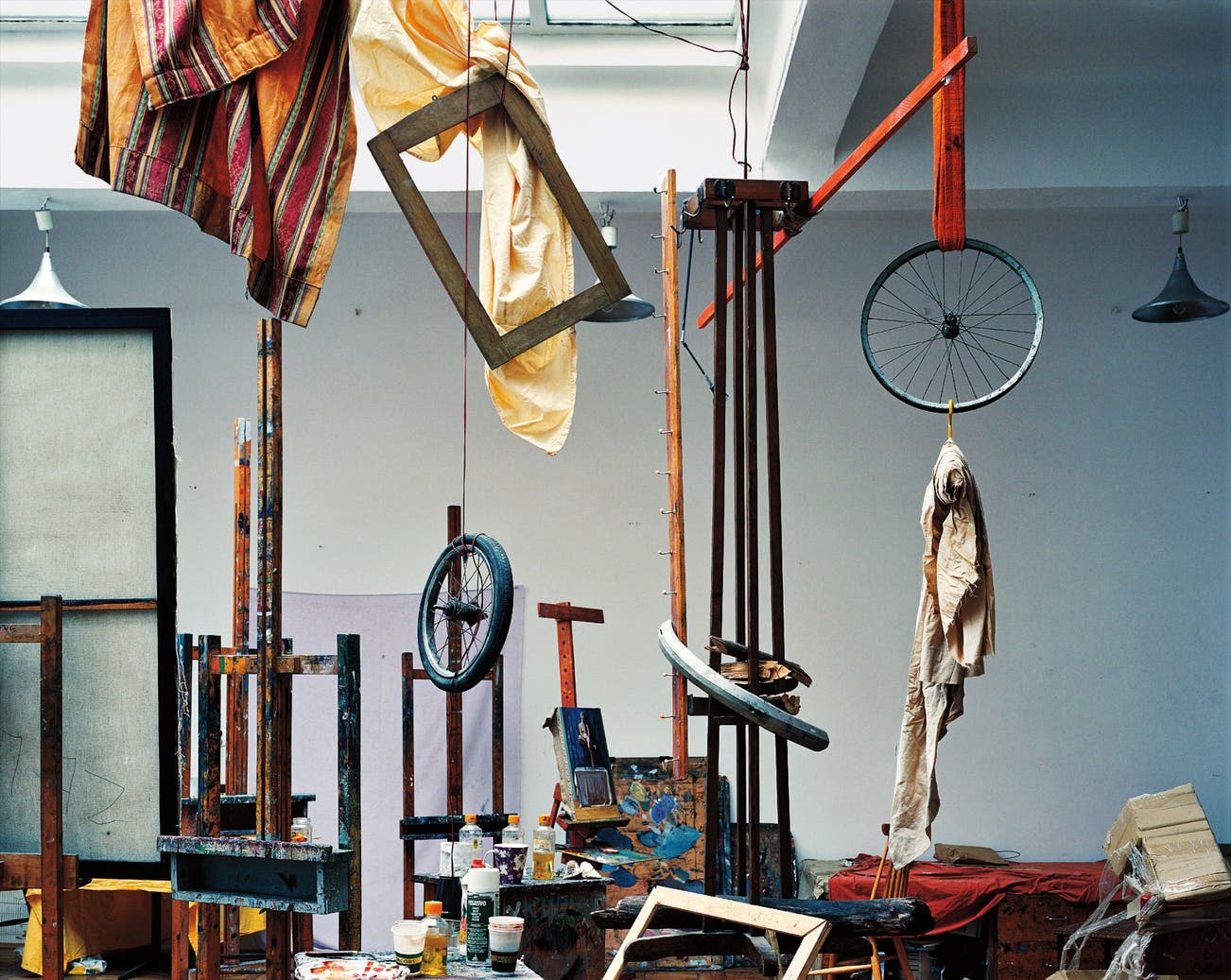 Leonora Hamill, the 2012 winner of the Prix HSBC pour la Photographie, captured this image of a painting studio at the Academy of Fine Art in Krakow, Poland during the first of many trips for her acclaimed series Art in Progress. Over a three-year period, Hamill visited art schools across Europe, Asia, Africa and the Americas and used her large-format 4 x 5 field camera to photograph the studios where the students worked. Despite their physical absence, the students remain present in the objects they have engaged with and the works they are in the process of making.