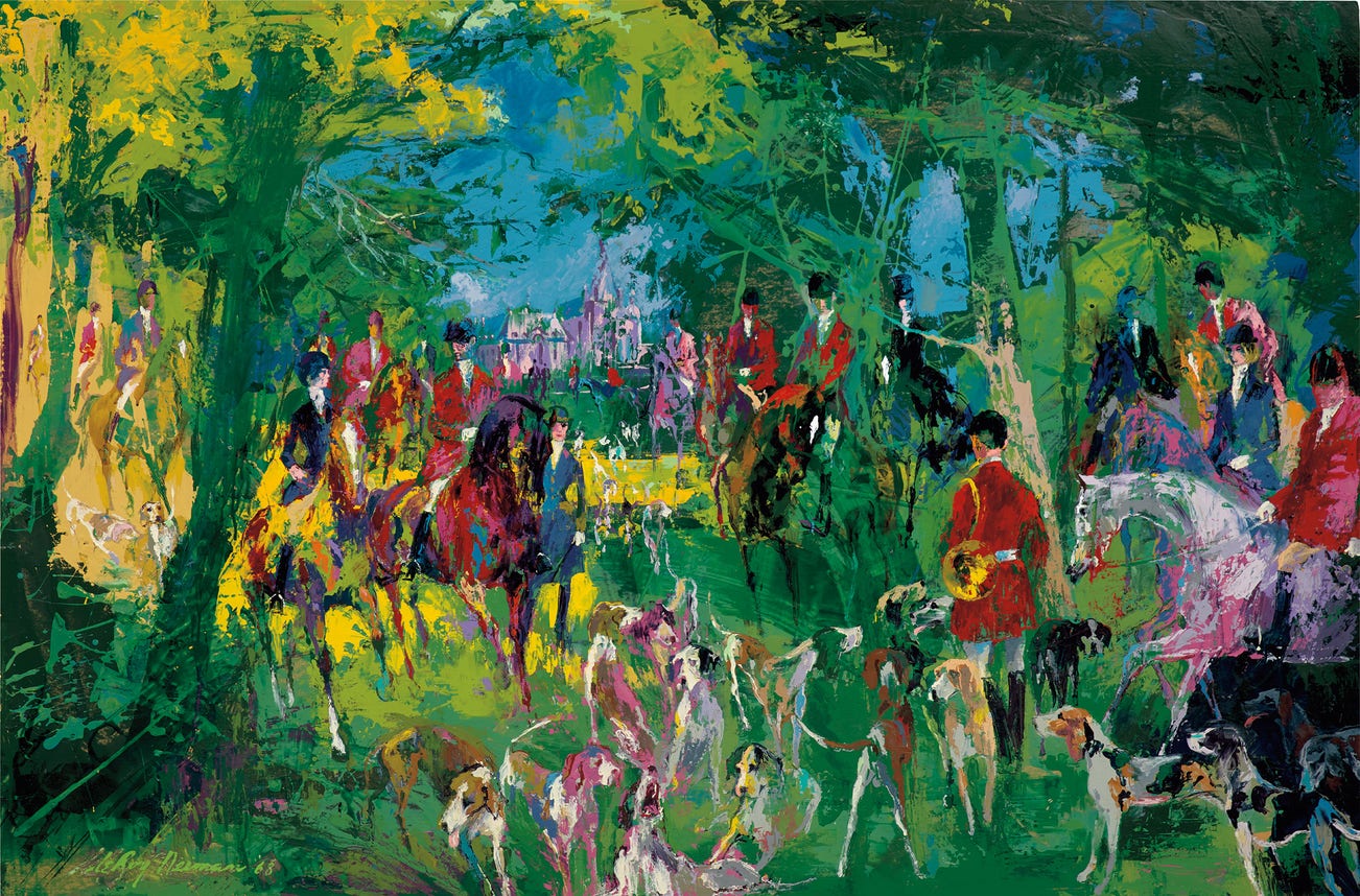 signed and dated "LeRoy Neiman 68" lower right; further signed, titled, inscribed and dated "LeRoy Neiman 1968 NY "Le rendez-vous" "Chateau de Chatilly" FORET DE FRANCE 68” on the reverse