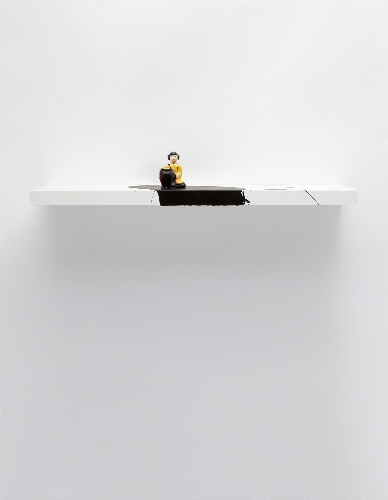 acrylic on wood with porcelain figurine