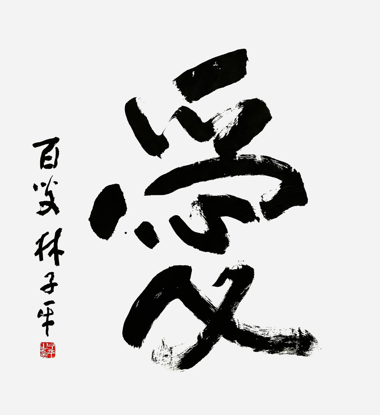 This work from Lim Tze Peng's series of single character calligraphies features the Chinese character 爱, which translates to "Love". In this work, Lim's strokes are swift and majestic, Lim retains the natural beauty of the black ink medium and allow viewers to appreciate the strength of his brush strokes.