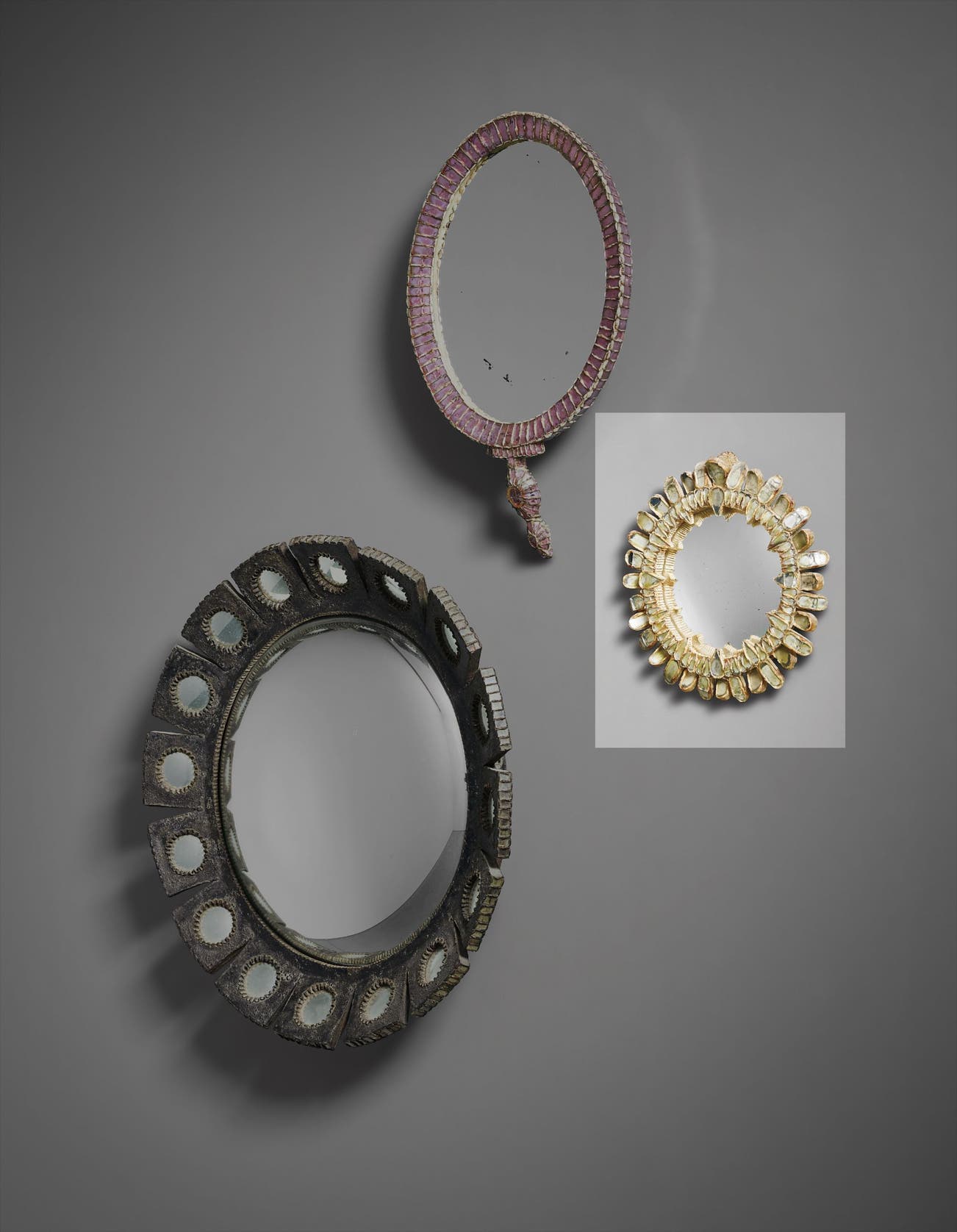 Eventually, however, she hit on her signature style, developing a material she coined talosel, which comprised layers of cellulose acetate that she carved, gouged, molded and encrusted with colored mirrored glass. This new material enabled her to expand her repertoire to include larger objects such as the mirrors for which she is best known today. The objects that she created in talosel are unlike any others — original, exuberant modern designs that, with the accretions and texture of the scarified talosel, carry the aura of ancient, time-worn relics. Vautrin credited the London art dealer David Gill with re-discovering her work at a 1986 auction of her property in Paris. Her work entered the collection of London's Victoria and Albert Museum, and since then has gained major traction in the twentieth-century design market.
