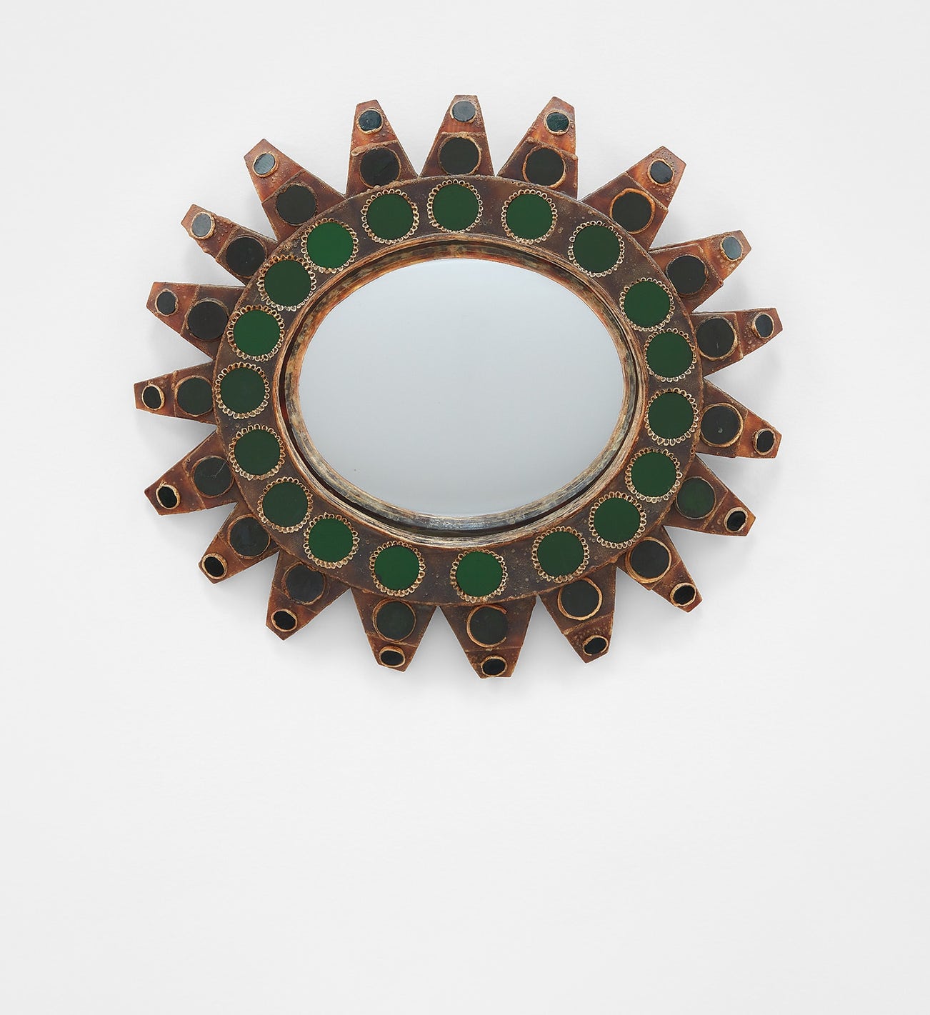 Eventually, however, she hit on her signature style, developing a material she coined talosel, which comprised layers of cellulose acetate that she carved, gouged, molded and encrusted with colored mirrored glass. This new material enabled her to expand her repertoire to include larger objects such as the mirrors for which she is best known today. The objects that she created in talosel are unlike any others — original, exuberant modern designs that, with the accretions and texture of the scarified talosel, carry the aura of ancient, time-worn relics. Vautrin credited the London art dealer David Gill with re-discovering her work at a 1986 auction of her property in Paris. Her work entered the collection of London's Victoria and Albert Museum, and since then has gained major traction in the twentieth-century design market.
