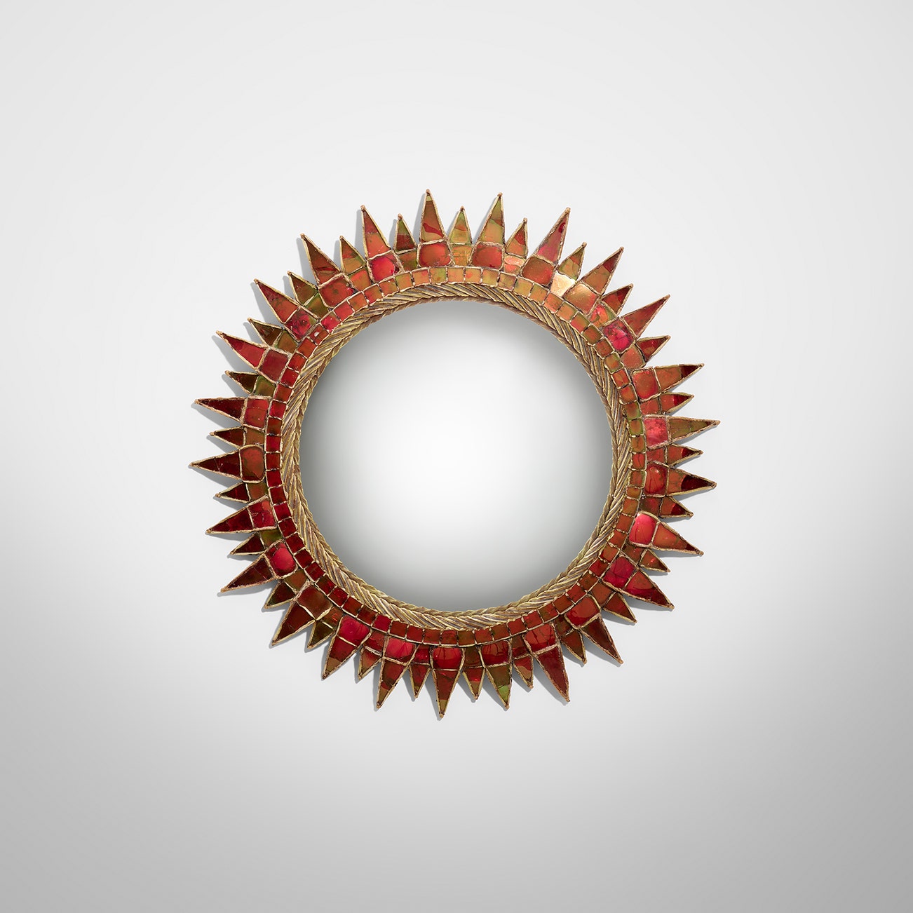 Eventually, however, she hit on her signature style, developing a material she coined talosel, which comprised layers of cellulose acetate that she carved, gouged, molded and encrusted with colored mirrored glass. This new material enabled her to expand her repertoire to include larger objects such as the mirrors for which she is best known today. The objects that she created in talosel are unlike any others — original, exuberant modern designs that, with the accretions and texture of the scarified talosel, carry the aura of ancient, time-worn relics. Vautrin credited the London art dealer David Gill with re-discovering her work at a 1986 auction of her property in Paris. Her work entered the collection of London's Victoria and Albert Museum, and since then has gained major traction in the twentieth-century design market.