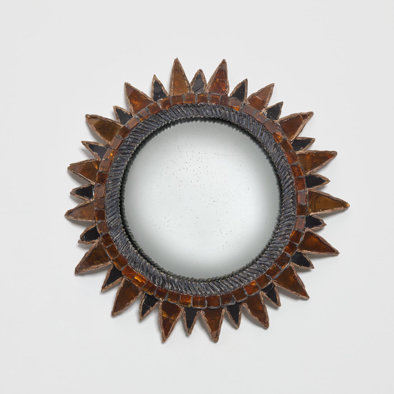 Eventually, however, she hit on her signature style, developing a material she coined talosel, which comprised layers of cellulose acetate that she carved, gouged, molded and encrusted with colored mirrored glass. This new material enabled her to expand her repertoire to include larger objects such as the mirrors for which she is best known today. The objects that she created in talosel are unlike any others — original, exuberant modern designs that, with the accretions and texture of the scarified talosel, carry the aura of ancient, time-worn relics. Vautrin credited the London art dealer David Gill with re-discovering her work at a 1986 auction of her property in Paris. Her work entered the collection of London's Victoria and Albert Museum, and since then has gained major traction in the twentieth-century design market.