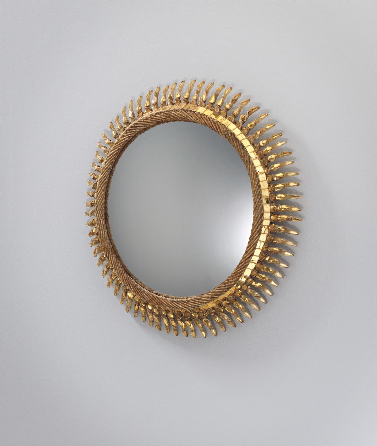 Eventually, however, she hit on her signature style, developing a material she coined talosel, which comprised layers of cellulose acetate that she carved, gouged, molded and encrusted with colored mirrored glass. This new material enabled her to expand her repertoire to include larger objects such as the mirrors for which she is best known today. The objects that she created in talosel are unlike any others — original, exuberant modern designs that, with the accretions and texture of the scarified talosel, carry the aura of ancient, time-worn relics. Vautrin credited the London art dealer David Gill with re-discovering her work at a 1986 auction of her property in Paris. Her work entered the collection of London's Victoria and Albert Museum, and since then has gained major traction in the twentieth-century design market.