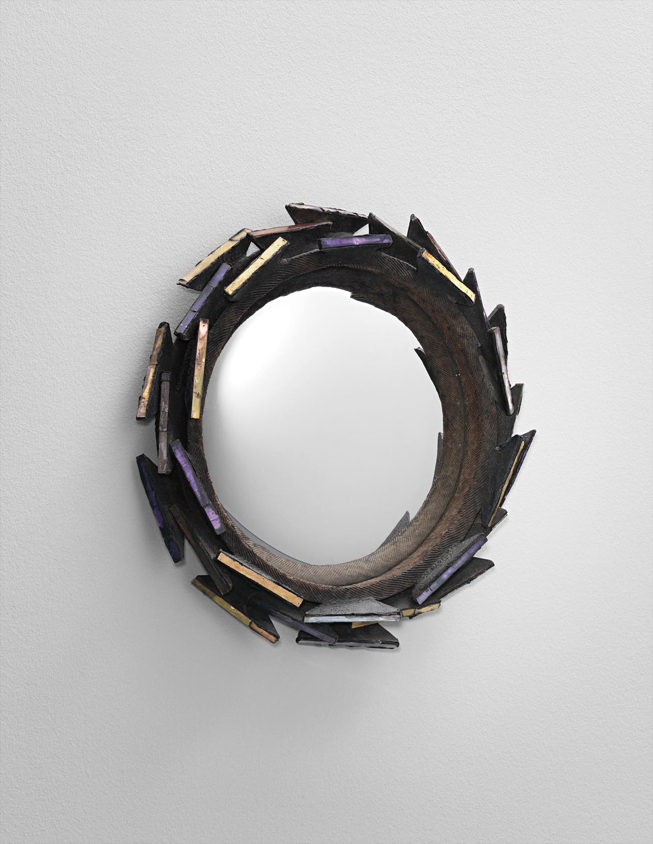 Eventually, however, she hit on her signature style, developing a material she coined talosel, which comprised layers of cellulose acetate that she carved, gouged, molded and encrusted with colored mirrored glass. This new material enabled her to expand her repertoire to include larger objects such as the mirrors for which she is best known today. The objects that she created in talosel are unlike any others — original, exuberant modern designs that, with the accretions and texture of the scarified talosel, carry the aura of ancient, time-worn relics. Vautrin credited the London art dealer David Gill with re-discovering her work at a 1986 auction of her property in Paris. Her work entered the collection of London's Victoria and Albert Museum, and since then has gained major traction in the twentieth-century design market.