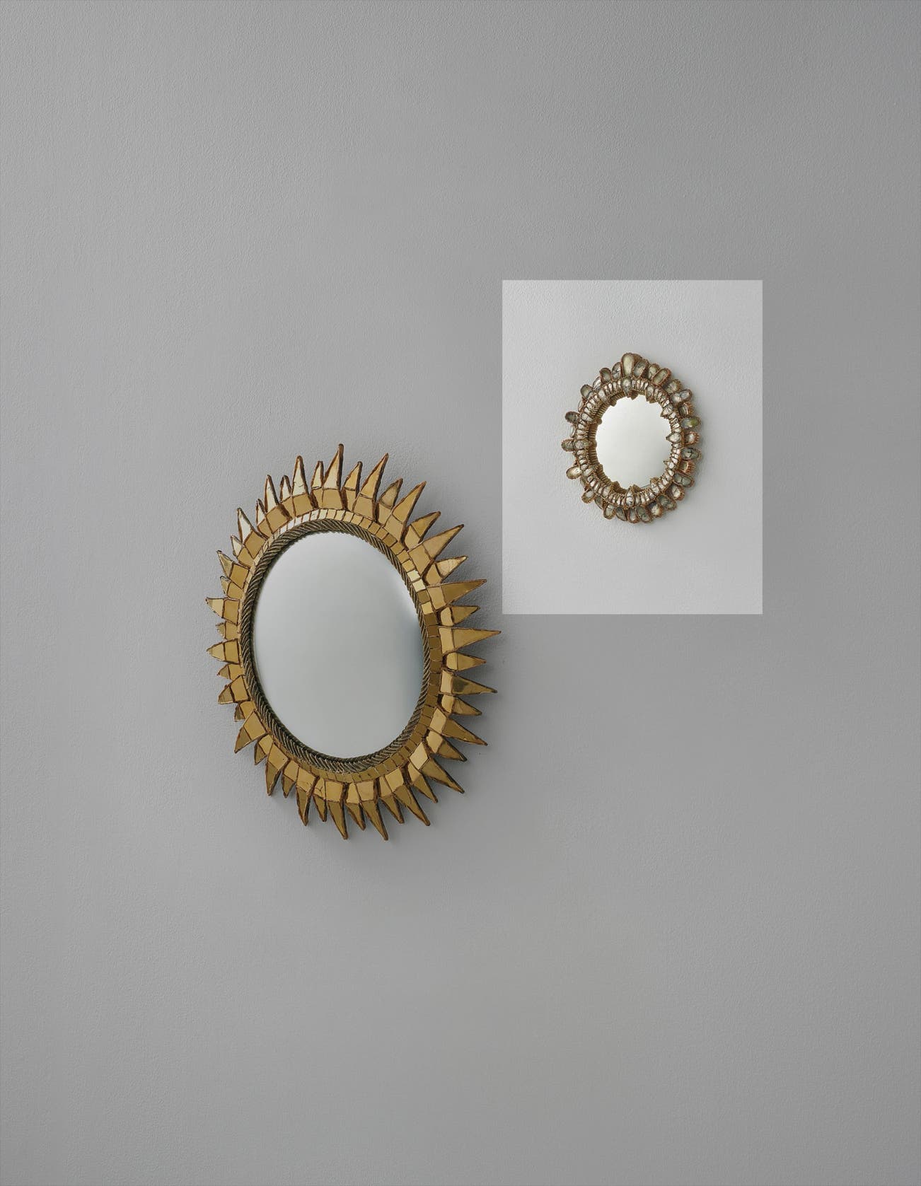 Eventually, however, she hit on her signature style, developing a material she coined talosel, which comprised layers of cellulose acetate that she carved, gouged, molded and encrusted with colored mirrored glass. This new material enabled her to expand her repertoire to include larger objects such as the mirrors for which she is best known today. The objects that she created in talosel are unlike any others — original, exuberant modern designs that, with the accretions and texture of the scarified talosel, carry the aura of ancient, time-worn relics. Vautrin credited the London art dealer David Gill with re-discovering her work at a 1986 auction of her property in Paris. Her work entered the collection of London's Victoria and Albert Museum, and since then has gained major traction in the twentieth-century design market.