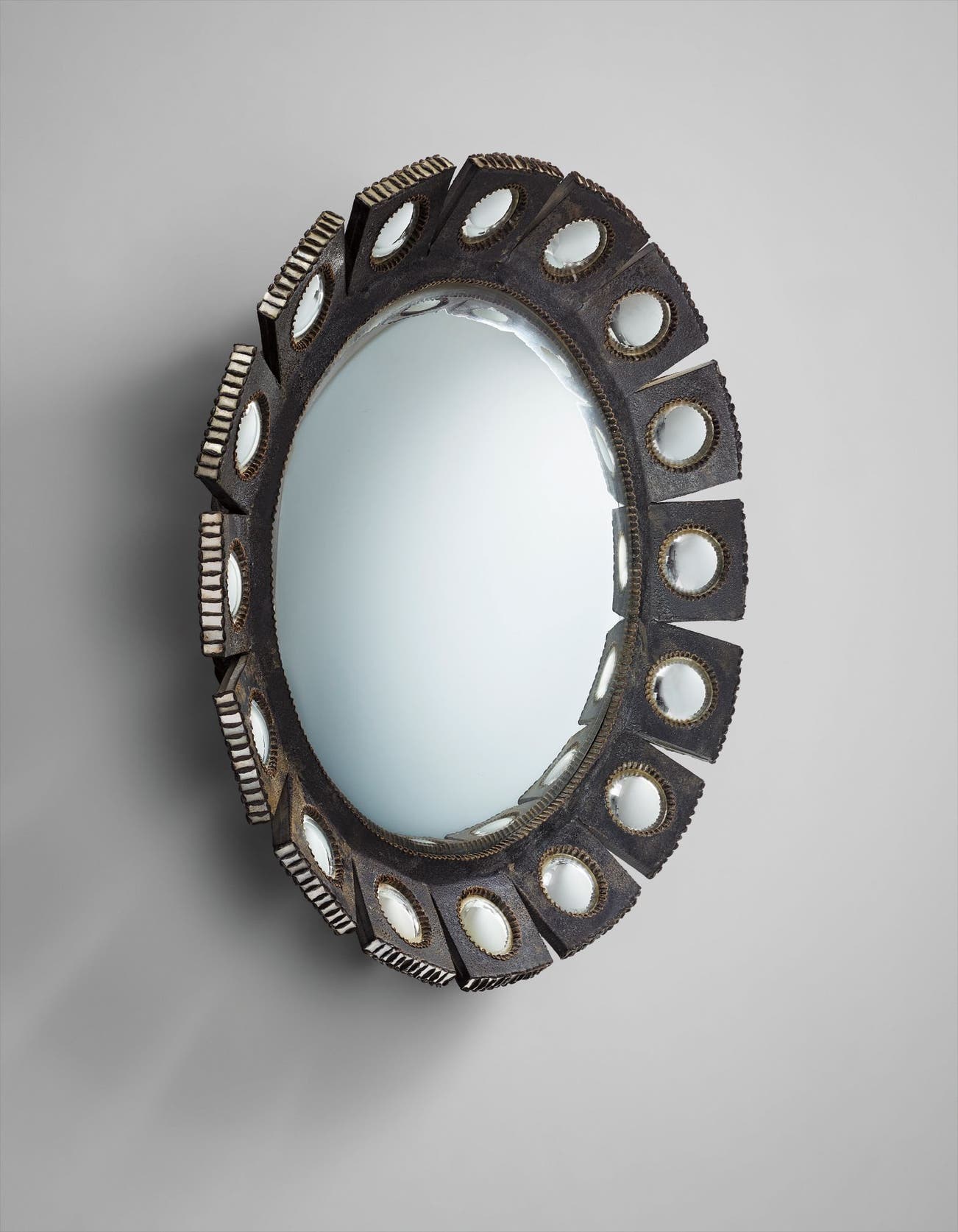 Eventually, however, she hit on her signature style, developing a material she coined talosel, which comprised layers of cellulose acetate that she carved, gouged, molded and encrusted with colored mirrored glass. This new material enabled her to expand her repertoire to include larger objects such as the mirrors for which she is best known today. The objects that she created in talosel are unlike any others — original, exuberant modern designs that, with the accretions and texture of the scarified talosel, carry the aura of ancient, time-worn relics. Vautrin credited the London art dealer David Gill with re-discovering her work at a 1986 auction of her property in Paris. Her work entered the collection of London's Victoria and Albert Museum, and since then has gained major traction in the twentieth-century design market.