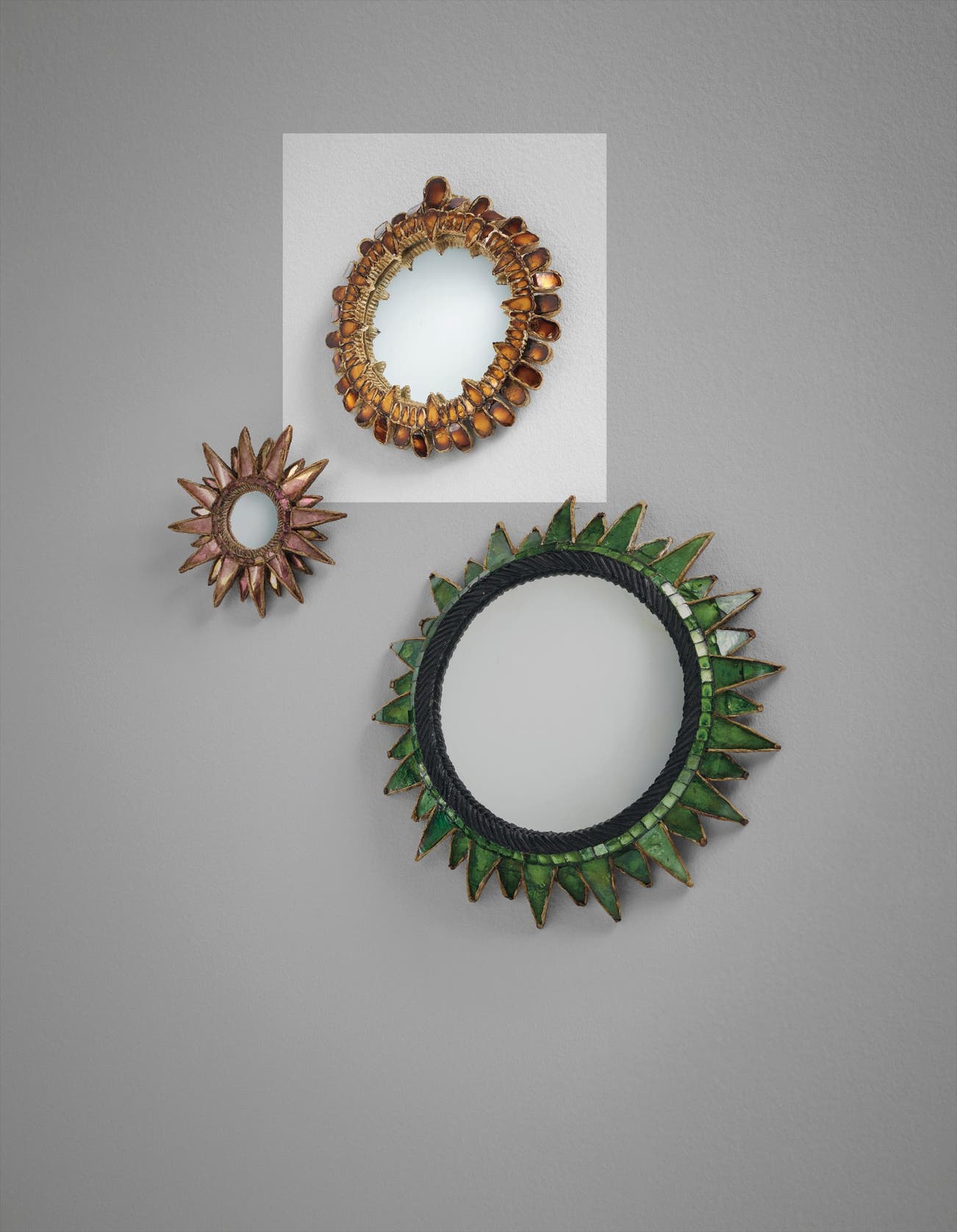 Eventually, however, she hit on her signature style, developing a material she coined talosel, which comprised layers of cellulose acetate that she carved, gouged, molded and encrusted with colored mirrored glass. This new material enabled her to expand her repertoire to include larger objects such as the mirrors for which she is best known today. The objects that she created in talosel are unlike any others — original, exuberant modern designs that, with the accretions and texture of the scarified talosel, carry the aura of ancient, time-worn relics. Vautrin credited the London art dealer David Gill with re-discovering her work at a 1986 auction of her property in Paris. Her work entered the collection of London's Victoria and Albert Museum, and since then has gained major traction in the twentieth-century design market.