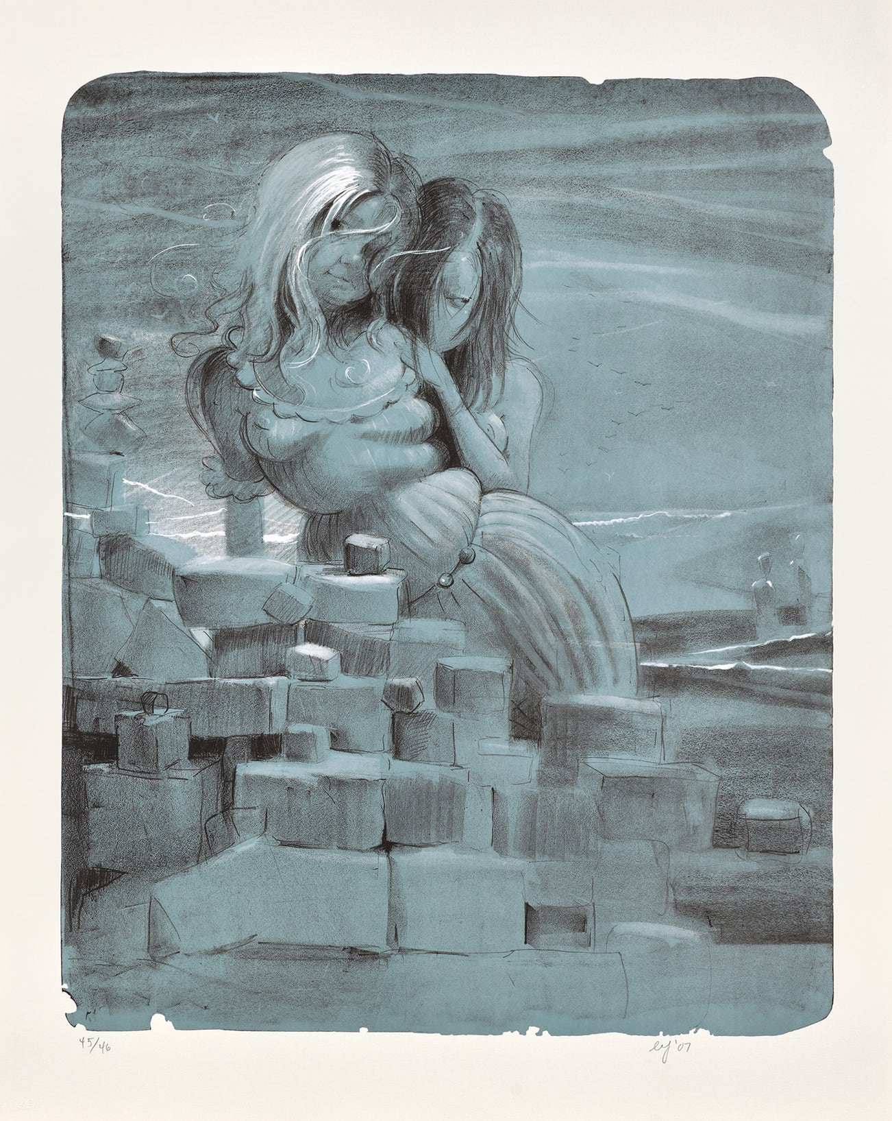 Lithograph in colors, on Rives BFK paper, with full margins.