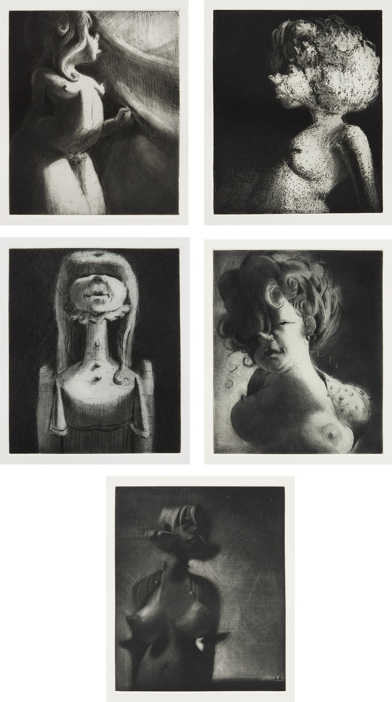 The complete set of four etching and aquatints and one mezzotint, on various wove papers, with full margins.