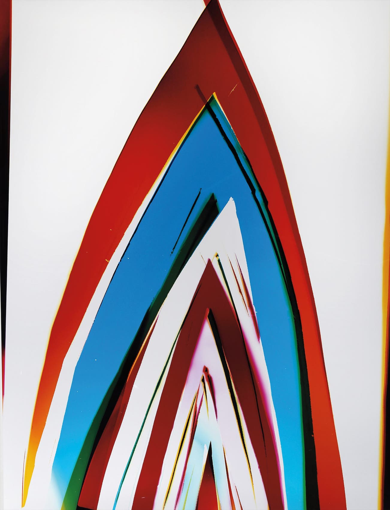 To create The Echoing Portal, the oversized photogram in the present lot, Nielsen overlapped coloured triangular shapes, alluding to a tunnel or passageway. Nielsen has exhibited worldwide, including New York, Mexico City and Berlin, and another unique work from this series is in the JPMorgan Chase Art Collection.