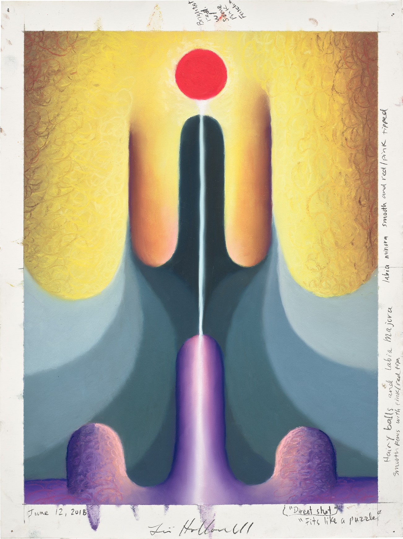 signed, titled and dated "June 12, 2018 Loie Hollowell "Direct Shot"" lower edge