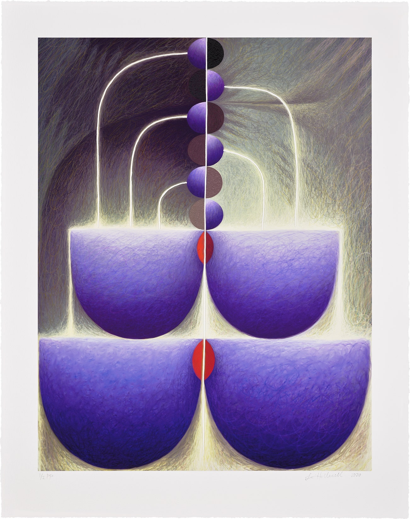 Digital print in colors with screenprint and puff additive ink, on German Etching paper, with full margins.