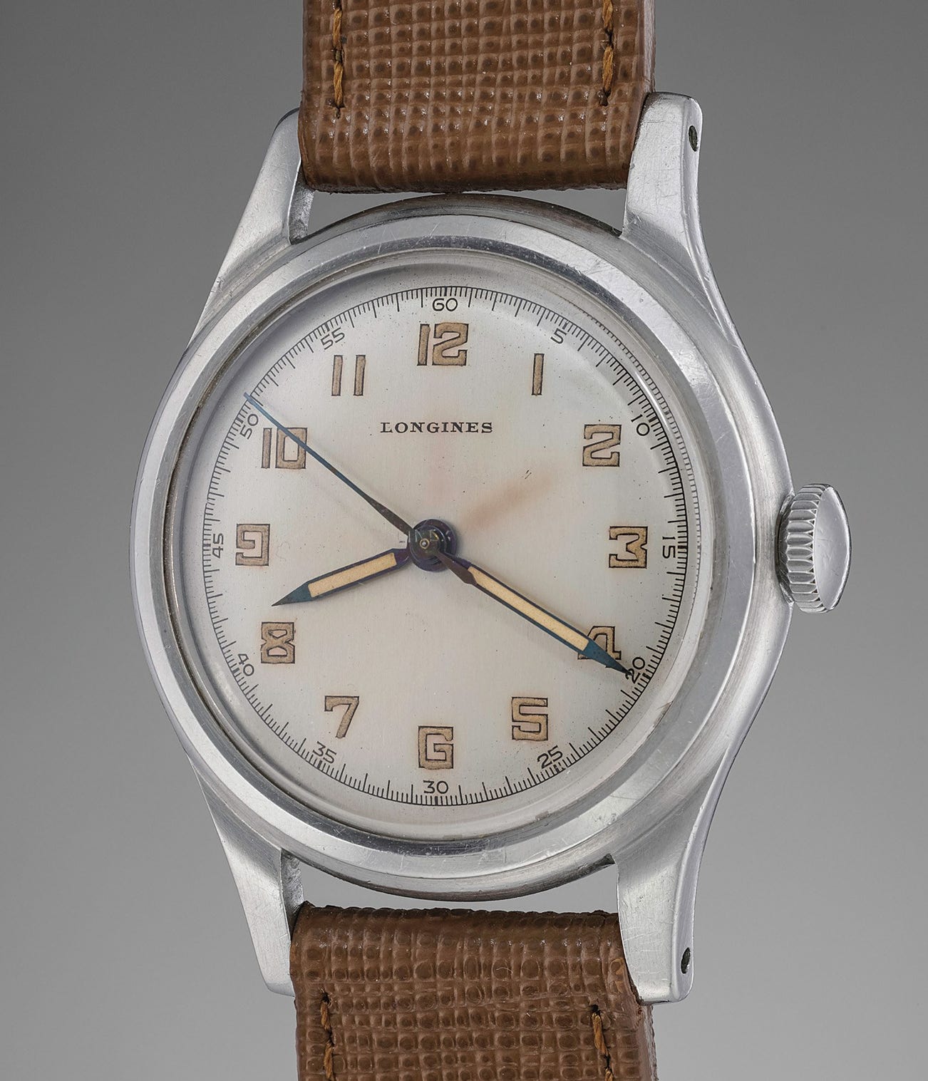 With Longines Extract from the Archives confirming sale of the present watch on August 20, 1948 to the company Terrasse, Longines' agent in Sweden at the time.