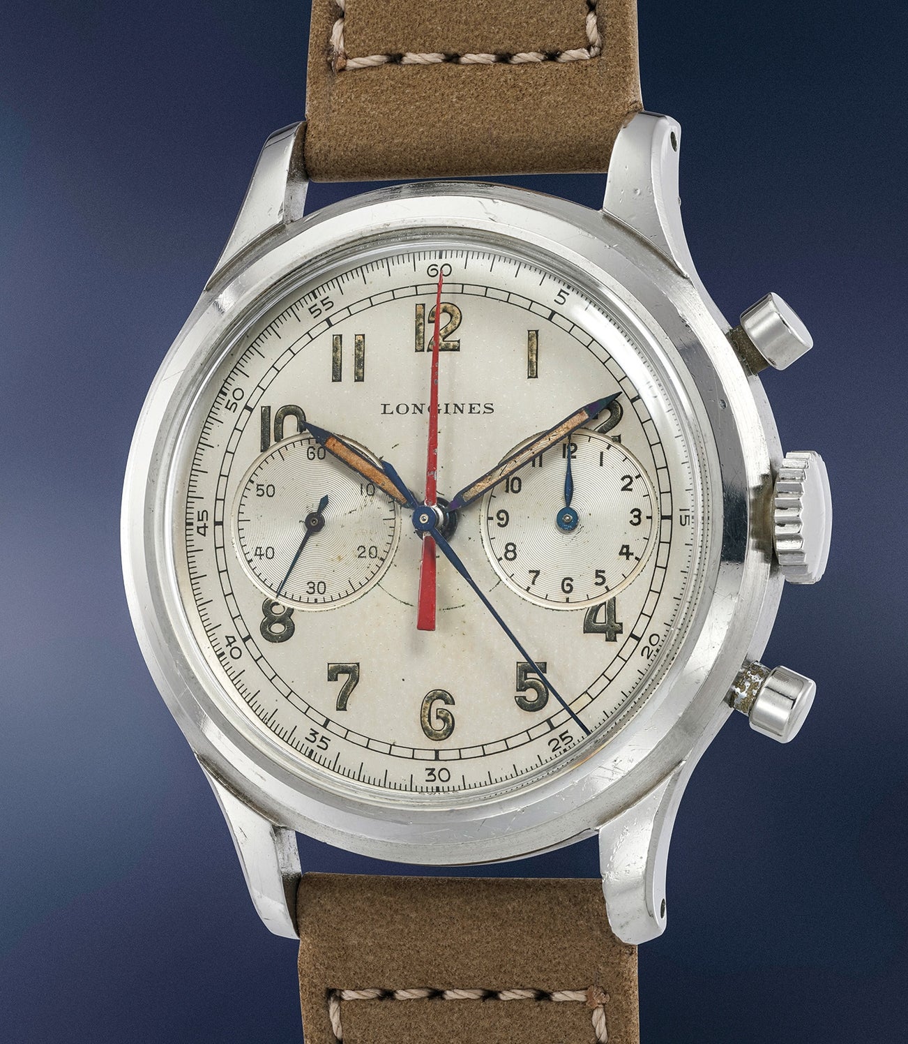 In 1936, Longines developed and patented what would become their most famous movement: Caliber 13ZN. This chronograph movement was the most elaborate of its time and was available in various versions featuring a 30 or 60 minute counter and one or two pushers.
