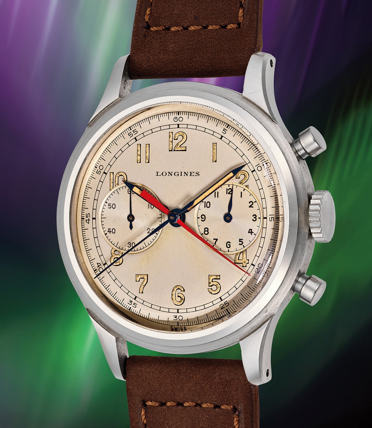 Accompanied by associated leather and stainless steel bracelet strap. Further accompanied by Longines Extract from the Archives confirming the present watch was invoiced on 12 August 1946 to the Longines-Wittnauer Watch Co., Inc., Longines' agent for the U.S.A.