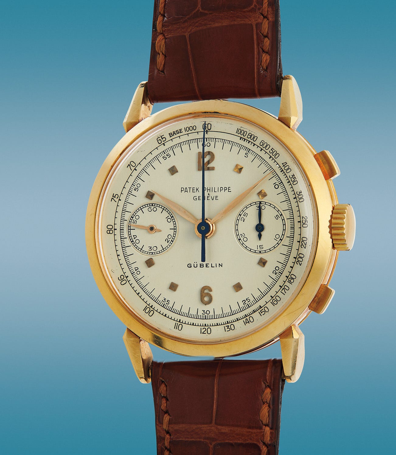Fresh-to-the-market when it was first offered in 2010 with its original Gübelin box, it has remained safe in one of America’s most esteemed vintage Patek Philippe collections since its auction debut. It is part of our second chapter of the Ride the Wave saga, exemplifying our collector’s commitment to excellence. We are privileged to be able to offer such a fantastic example of one of the most striking chronographs ever created by Patek Philippe, preserved in crisp and vibrant original condition.