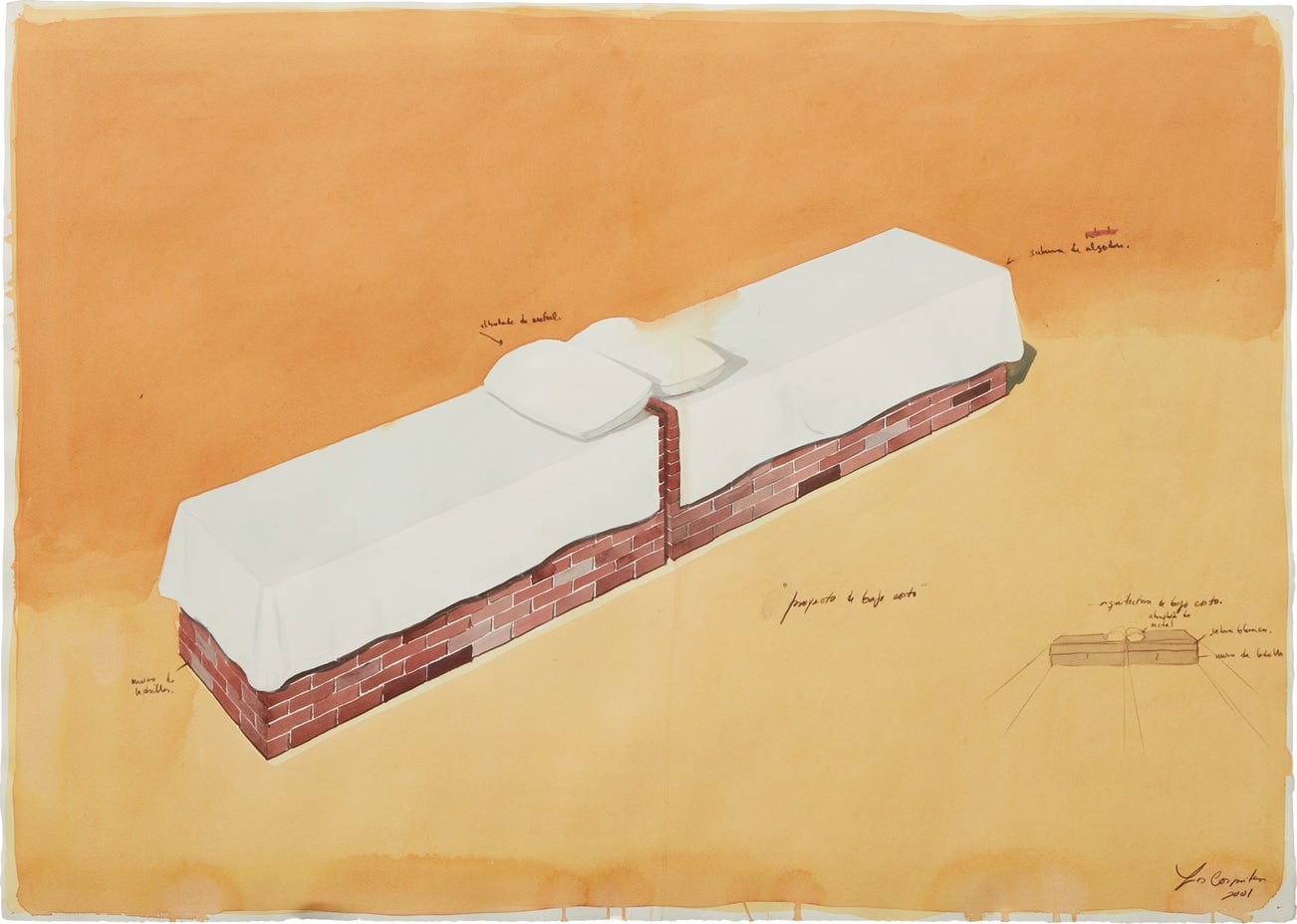 CubanThe Cuban artist collective Los Carpinteros (The Carpenters) was formed in 1992 and has since produced some of the most important contemporary art in Latin America. Originally comprised of Marco Castillo, Dagoberto Rodriguez and Alexandre Arrechea (who left the group in June 2003), the trio abandoned the concept of individual authorship and instead worked in the tradition of guild and artisan workshops. Their technically sophisticated drawings and sculptures are primarily inspired by design and architectural constructions, such as desks, chairs, armoires and other pieces of furniture. In illustrating seemingly banal objects, Los Carpinteros comment on materialism, highlighting the practicality as well as the uselessness of the depicted objects.